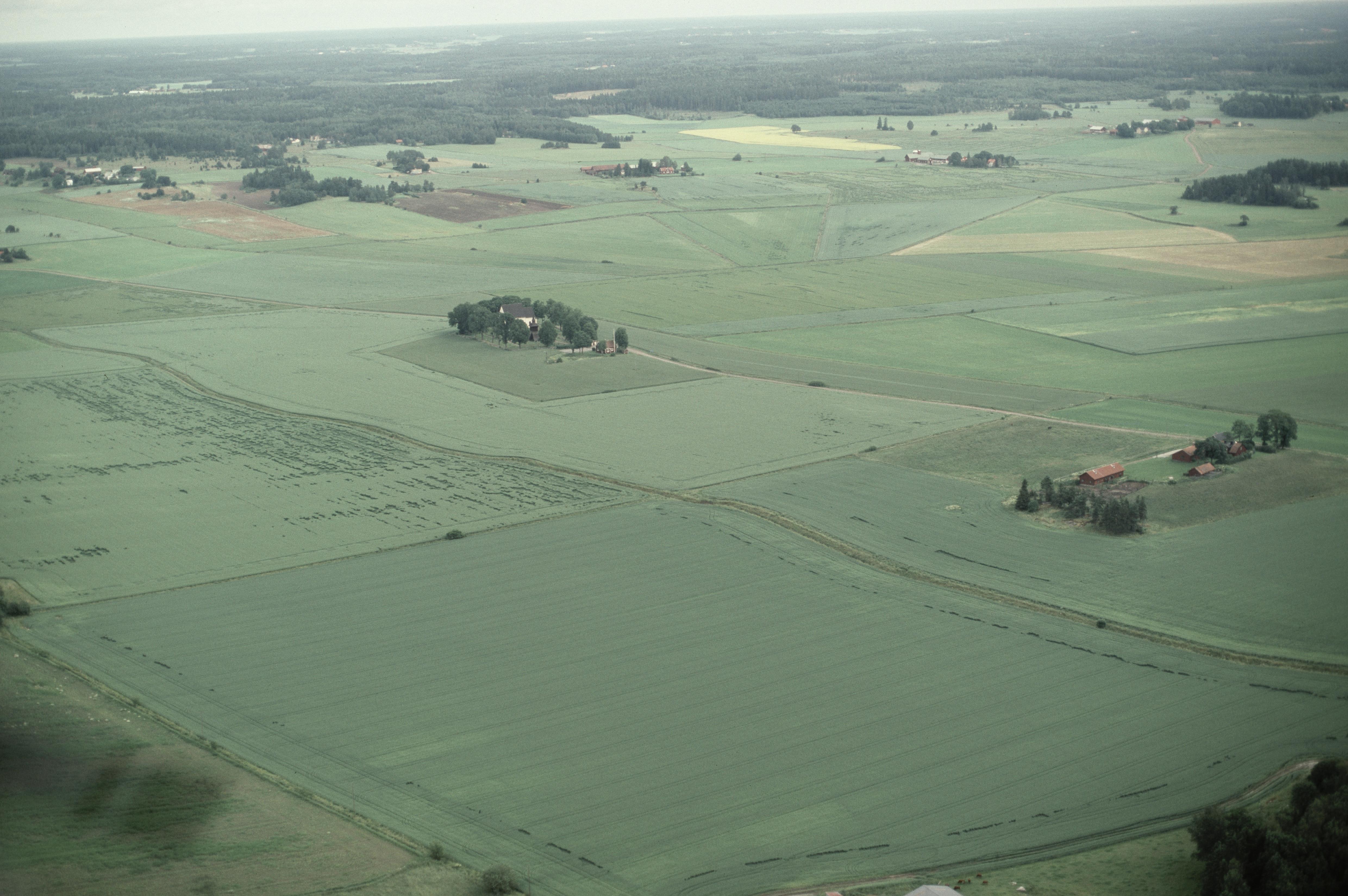Beskrivning: Markims kyrka över bildens mitt. I bildens övre del gränsen mot Orkesta socken. Bilden är tagen mot (väderstreck): NO