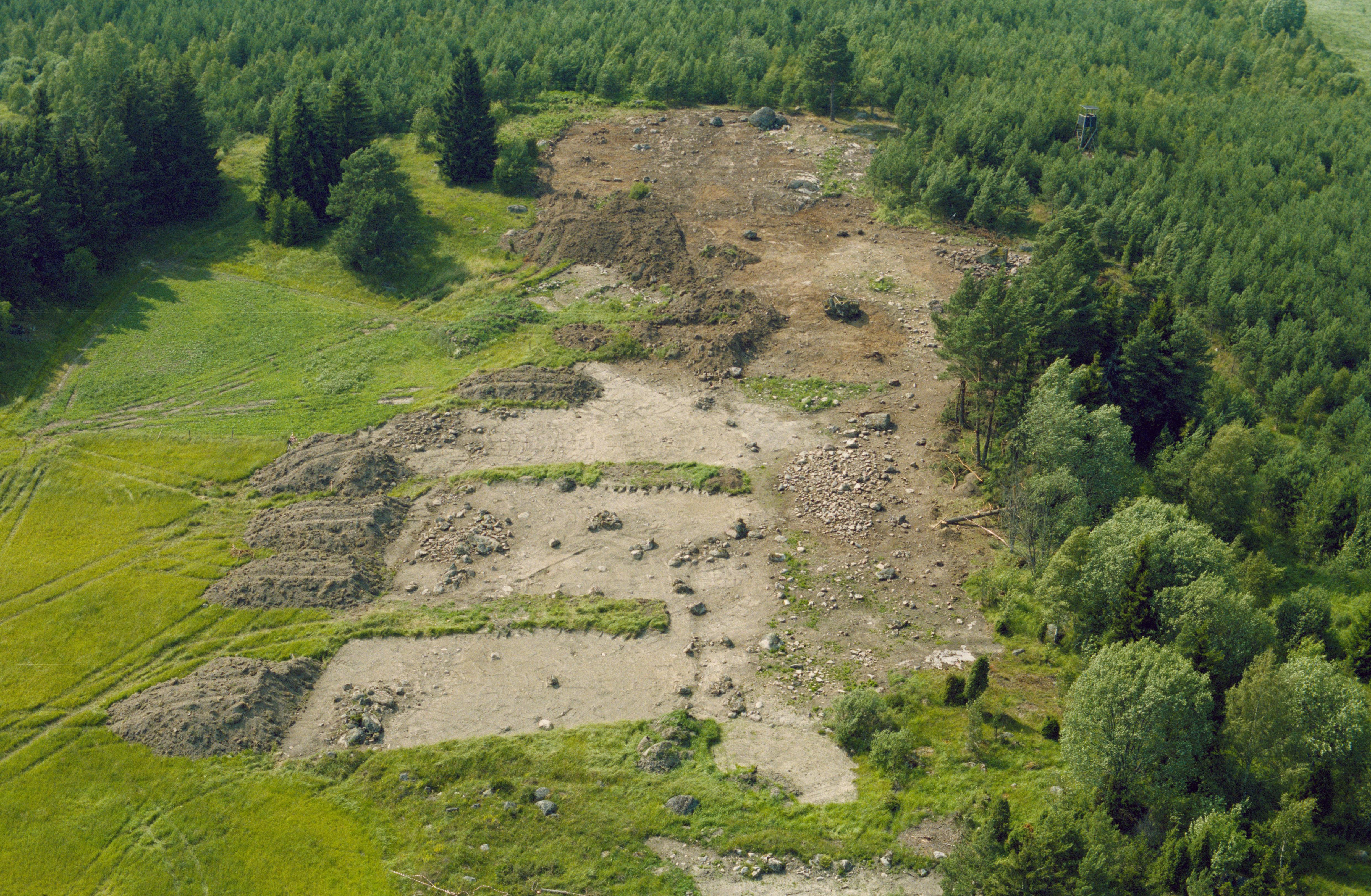 Beskrivning: Arkeologisk undersökning öster om Rickebyåns dalgång innan bygge av järnväg (Arlandabanan). Stensättning RAÄnr Odensala 236:1. i skogsområde öster om Sjötorpet, söder om Svartsjön, väster om Åslunda by. Bilden är tagen mot (väderstreck): V