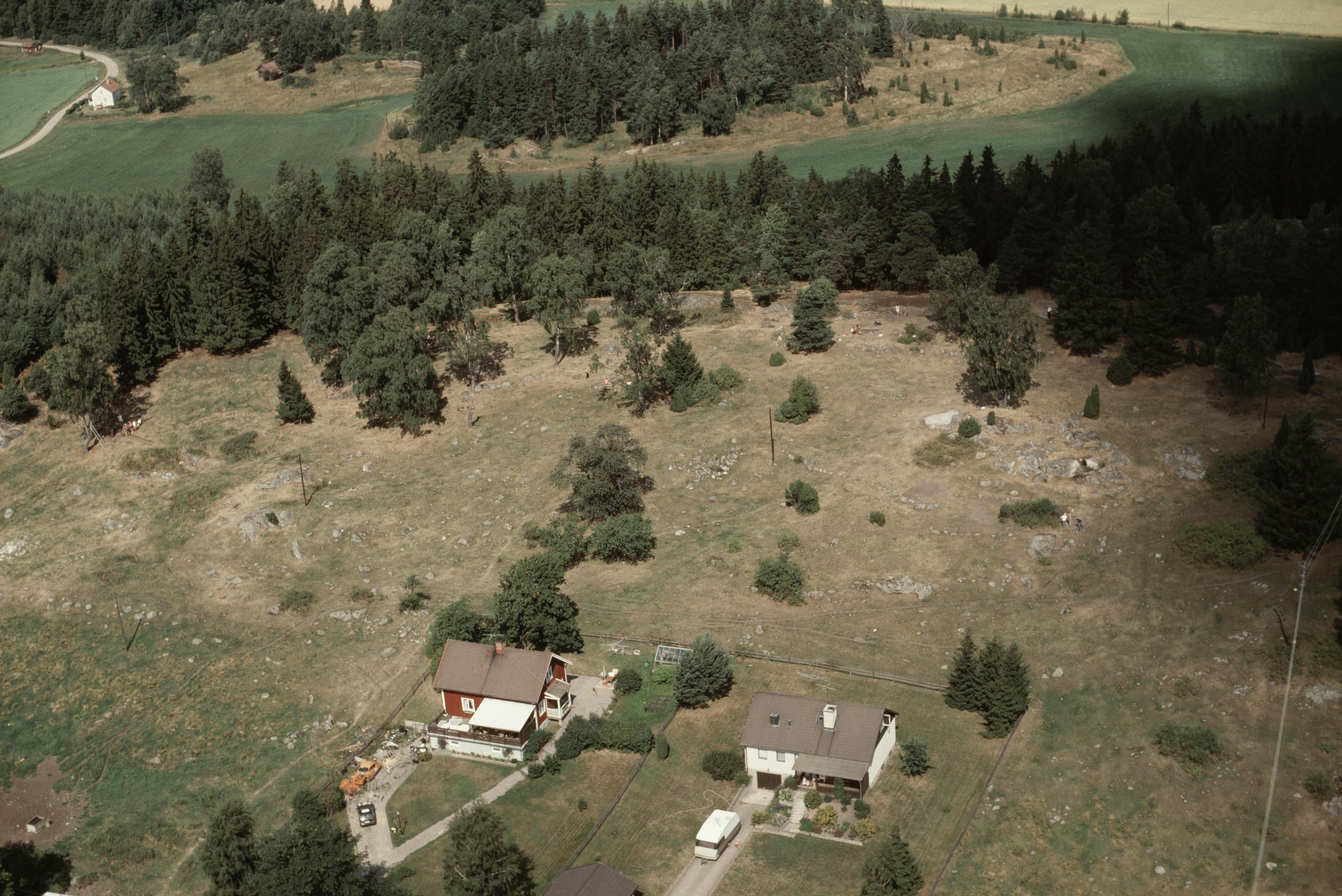 Beskrivning: Vid bildens mitt boplats Hyppinge gamla tomt med runristning, stensättningar RAÄnr Orkesta 25:1, 44:1, 45:1-2, 157 m.fl. Bilden är tagen mot (väderstreck): N