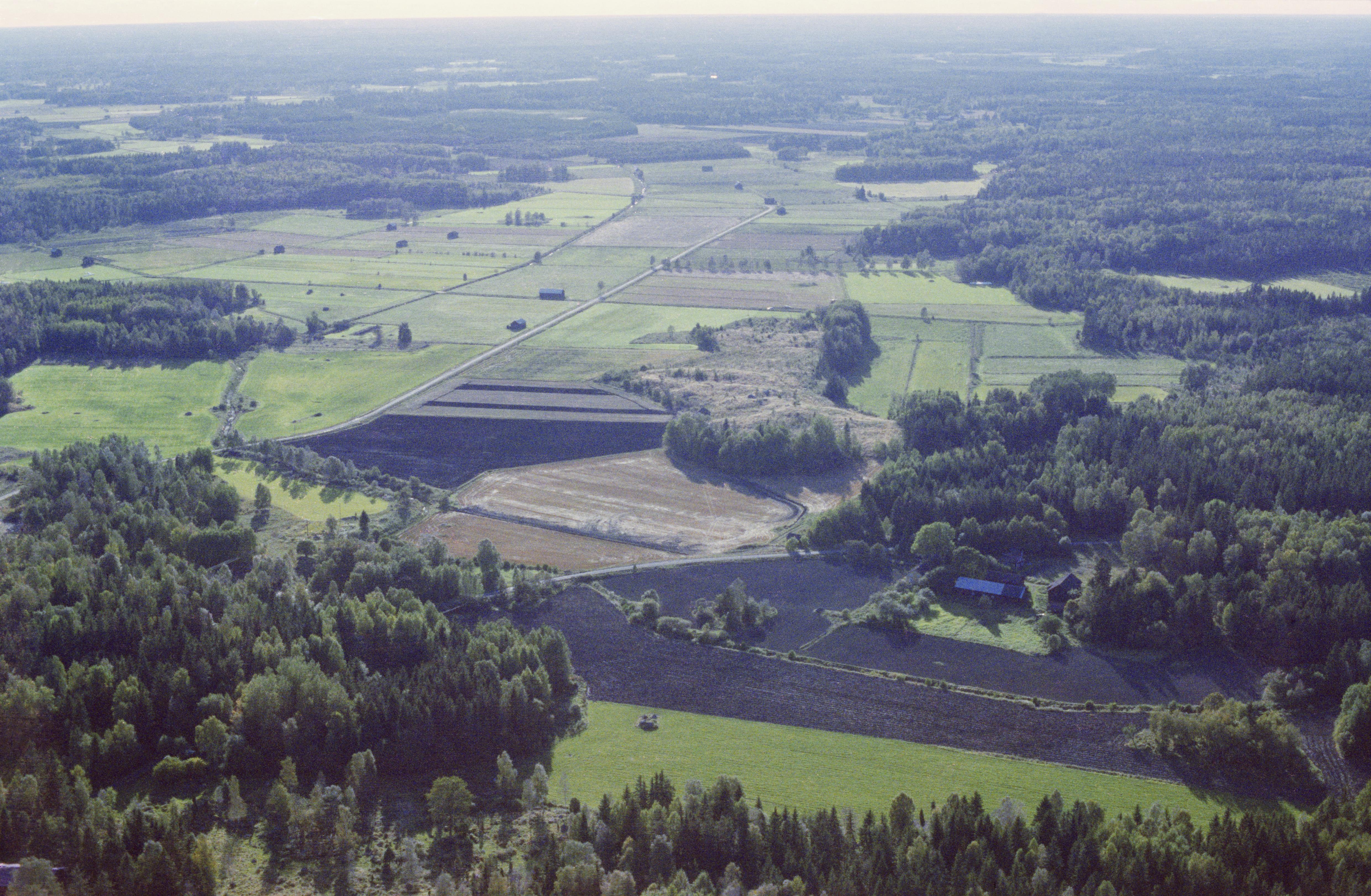 Beskrivning: Björklingeåns dalgång vid Sotmyra by. I bildens nedre del boplats RAÄnr Skuttunge 251:1. Vid bildens mitt boplats RAÄnr Skuttunge 318:1 vid Fräkendalen. Bilden är tagen mot (väderstreck): SV