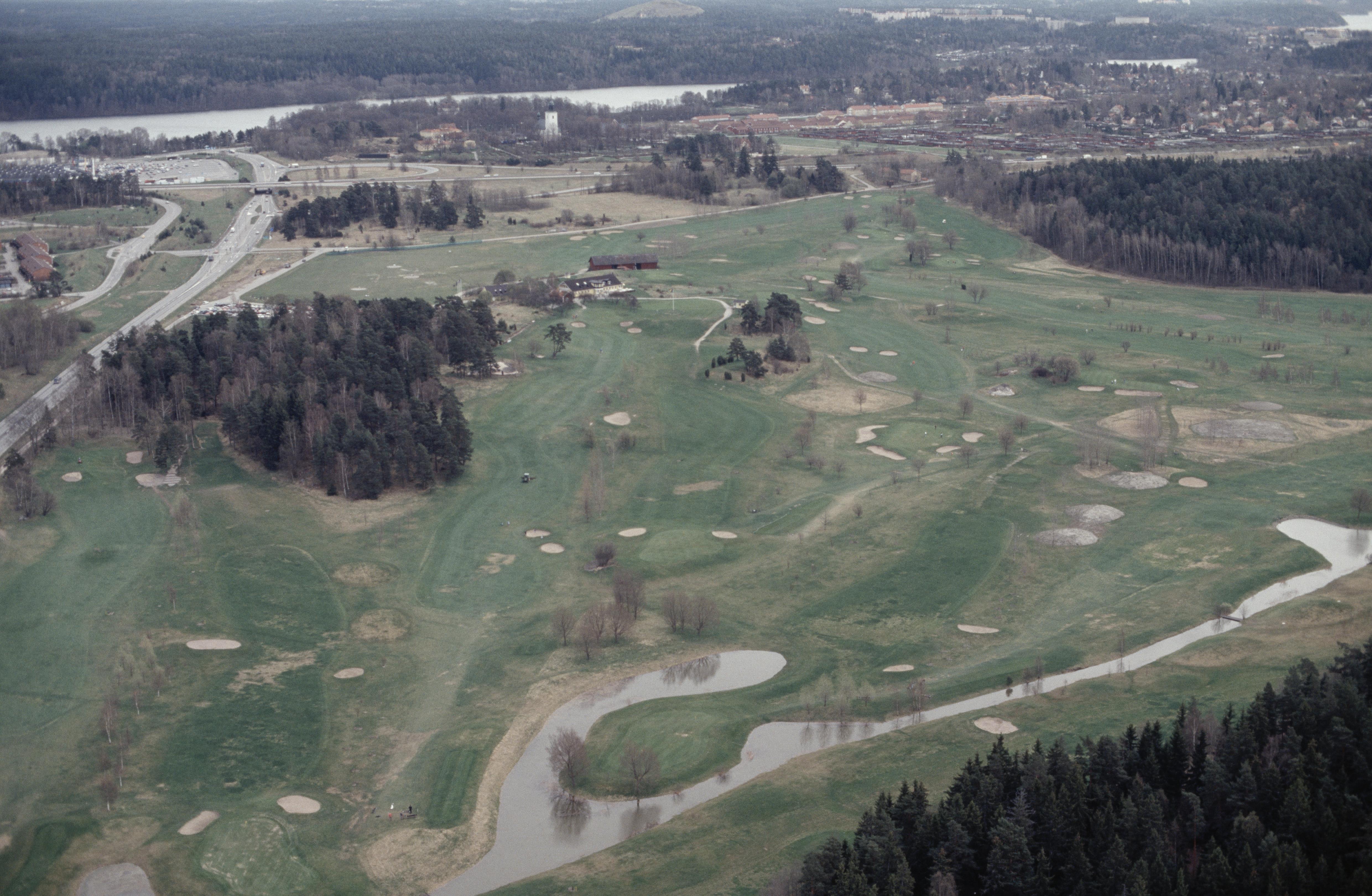 Beskrivning: Skillinge golfbana. Uppe till vänster gravfält RAÄnr Sollentuna 106:1 och Skillinge gamla tomt RAÄnr Sollentuna 107:1. Nere till höger gravfält RAÄnr Sollentuna 113:1 i Lillskogen. Sollentuna kyrka och sjön Norrviken i bildens övre del. Bilden är tagen mot (väderstreck): OSO