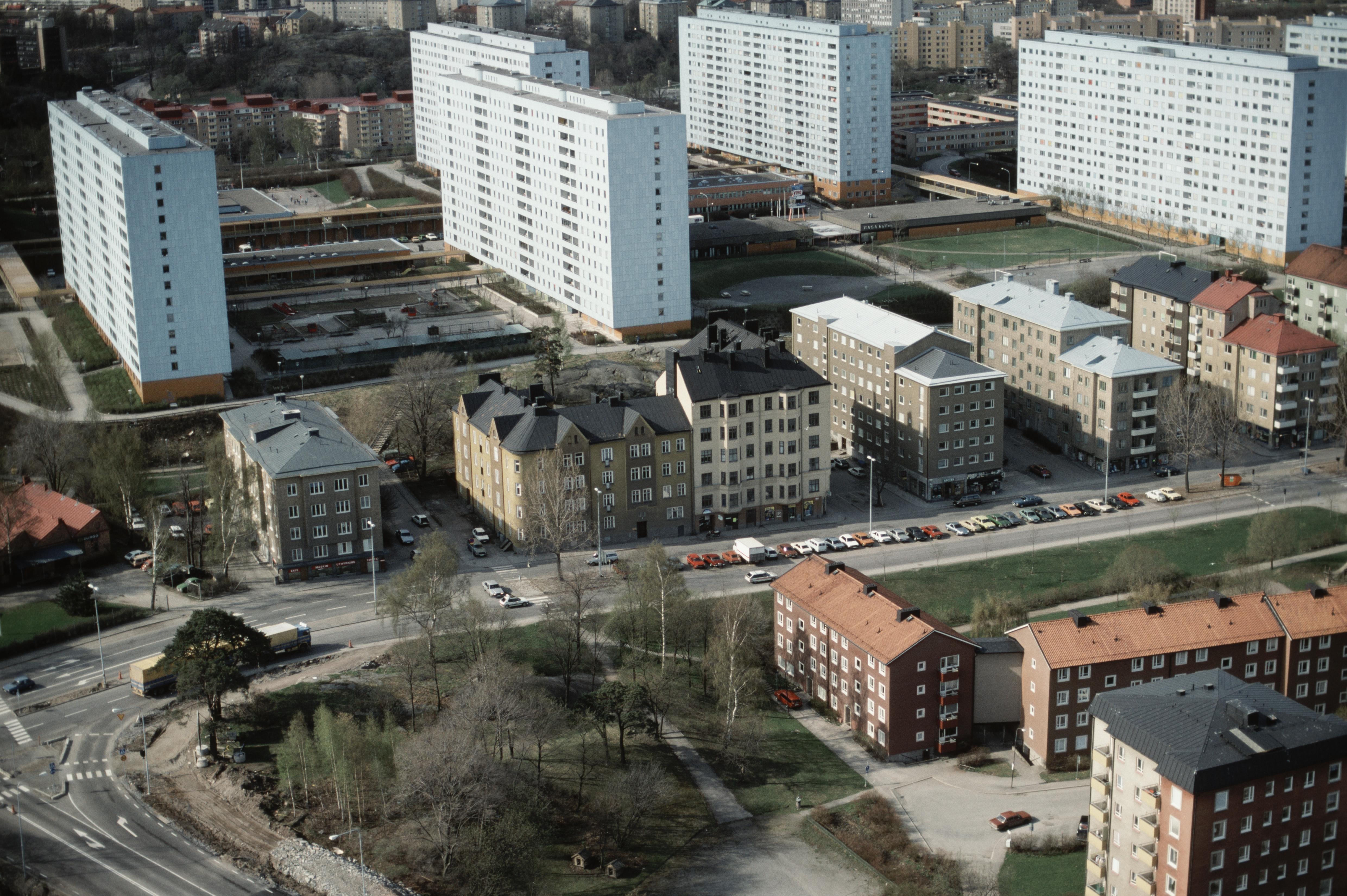 Beskrivning: Stadsdelen Hagalund i Solna. Bilden är tagen mot (väderstreck): SV