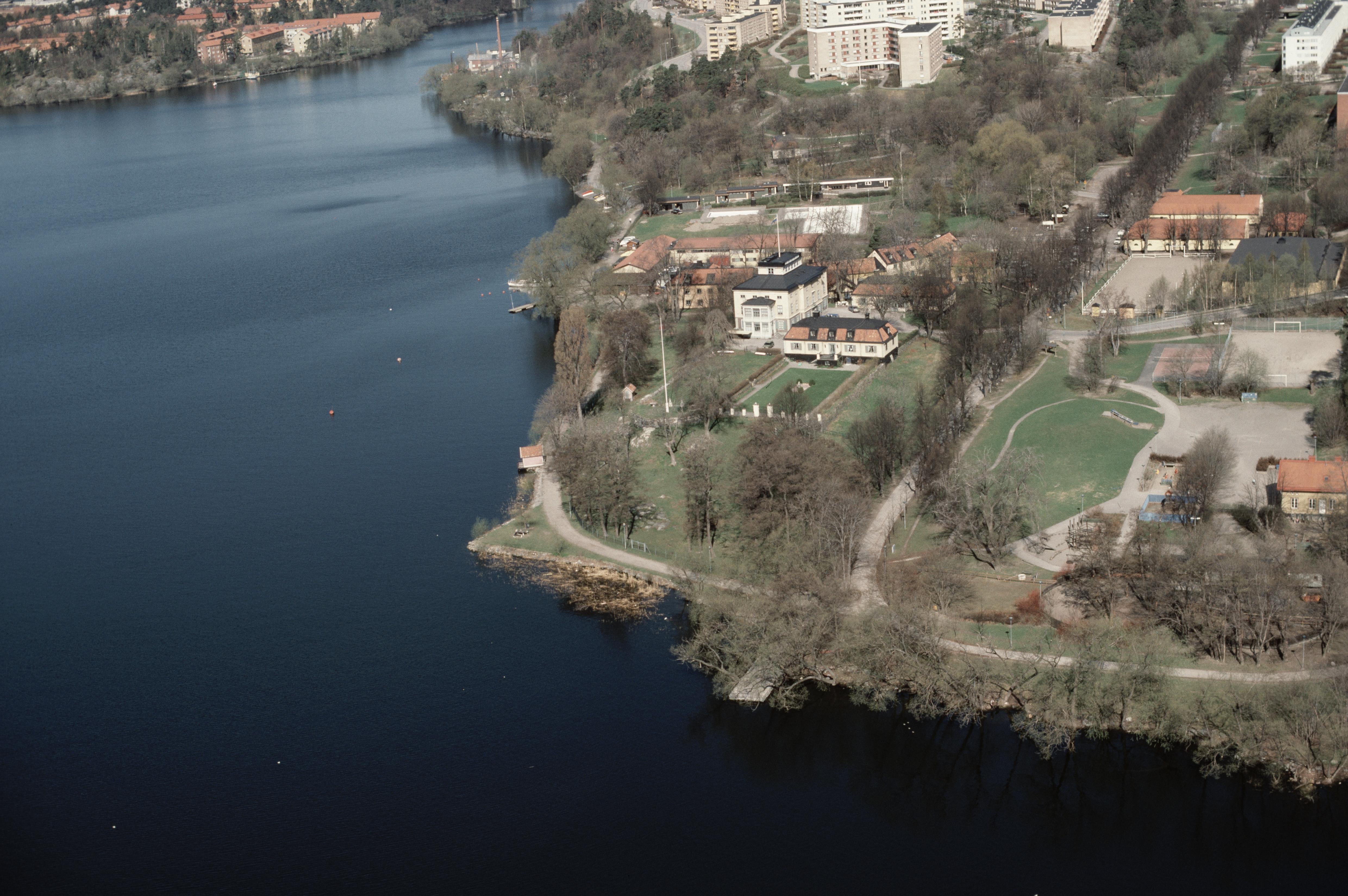 Beskrivning: Huvudsta herrgård (skrivs även Huvudsta gård) RAÄnr Solna 66:1 vid viken Ulvsundasjön i Mälaren. Bilden är tagen mot (väderstreck): VNV