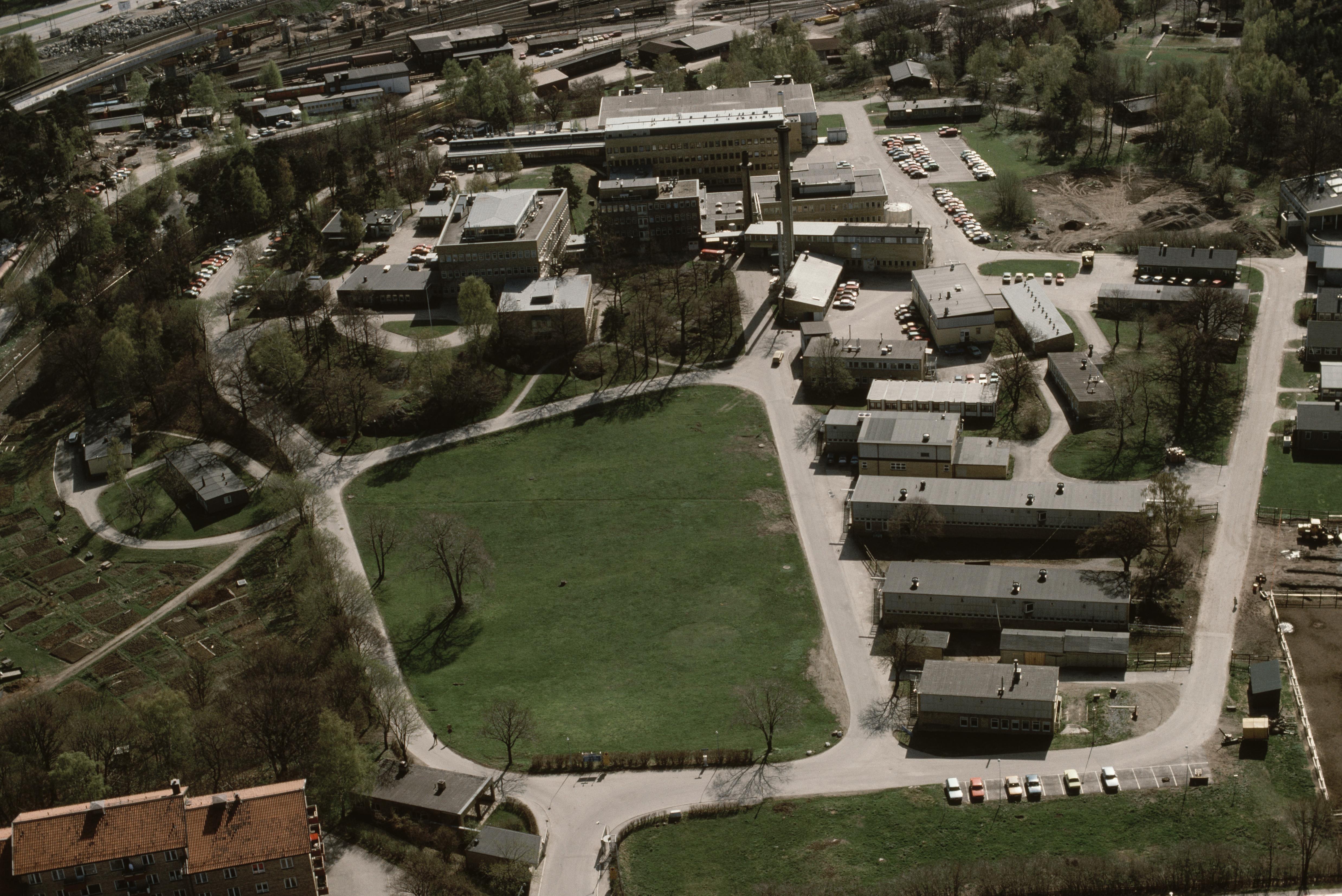 Beskrivning: Området Ingenting, norr om Ingentingskogen, väster om Tomteboda. Byggnader för Statens Bakteriologiska Laboratorium. I området bytomt RAÄnr Solna 106. Bilden är tagen mot (väderstreck): VNV