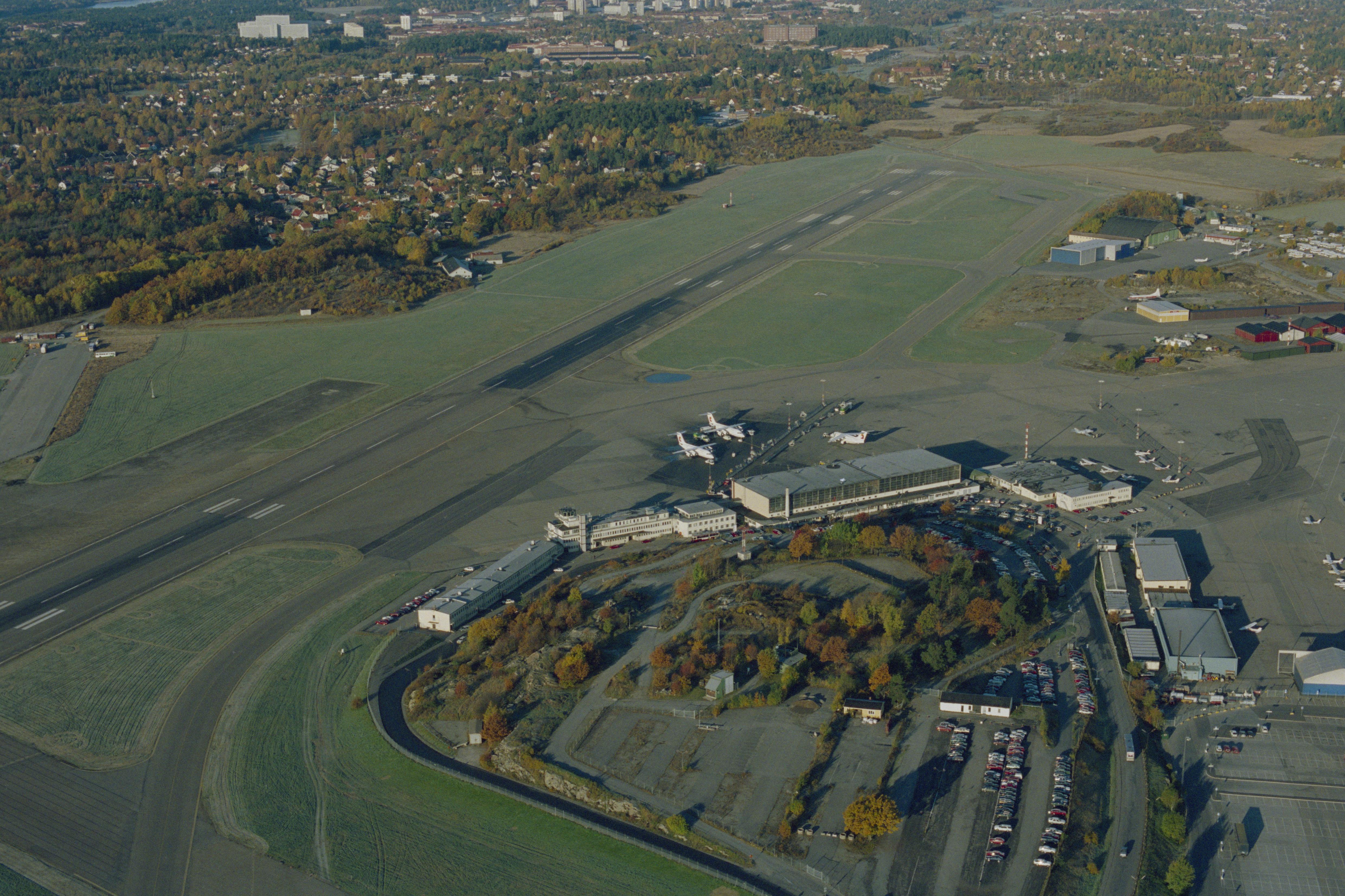 Beskrivning: Bromma flygplats i stadsdelen Bromma i Stockholms Västerort. Bilden är tagen mot (väderstreck): V