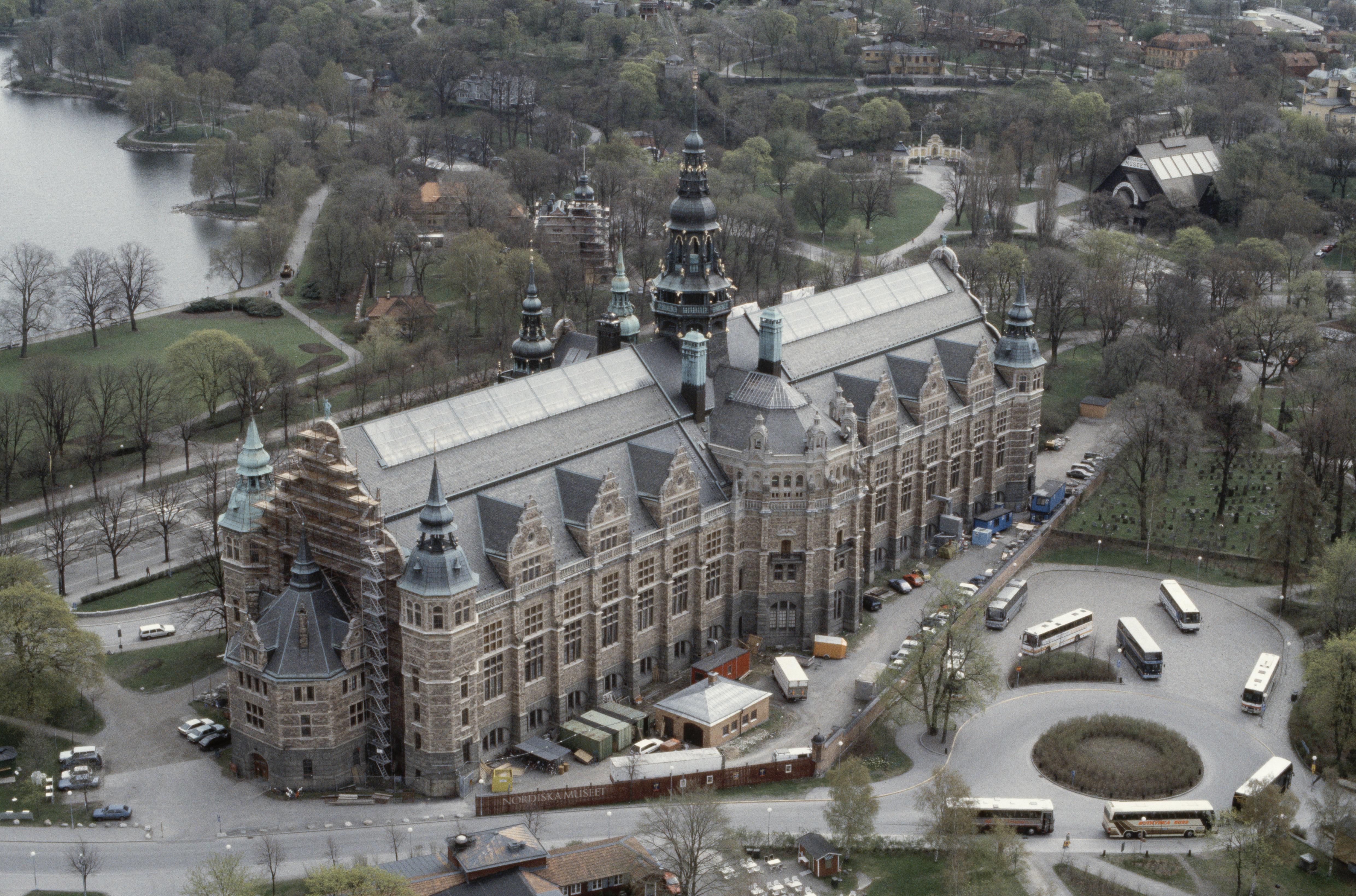 Beskrivning: Nordiska museet statligt byggnadsminne RAÄnr Stockholm 89:1. Uppe till vänster Djurgårdsbrunnsviken i Saltsjön, uppe till höger Biologiska museet. Bilden är tagen mot (väderstreck): SO
