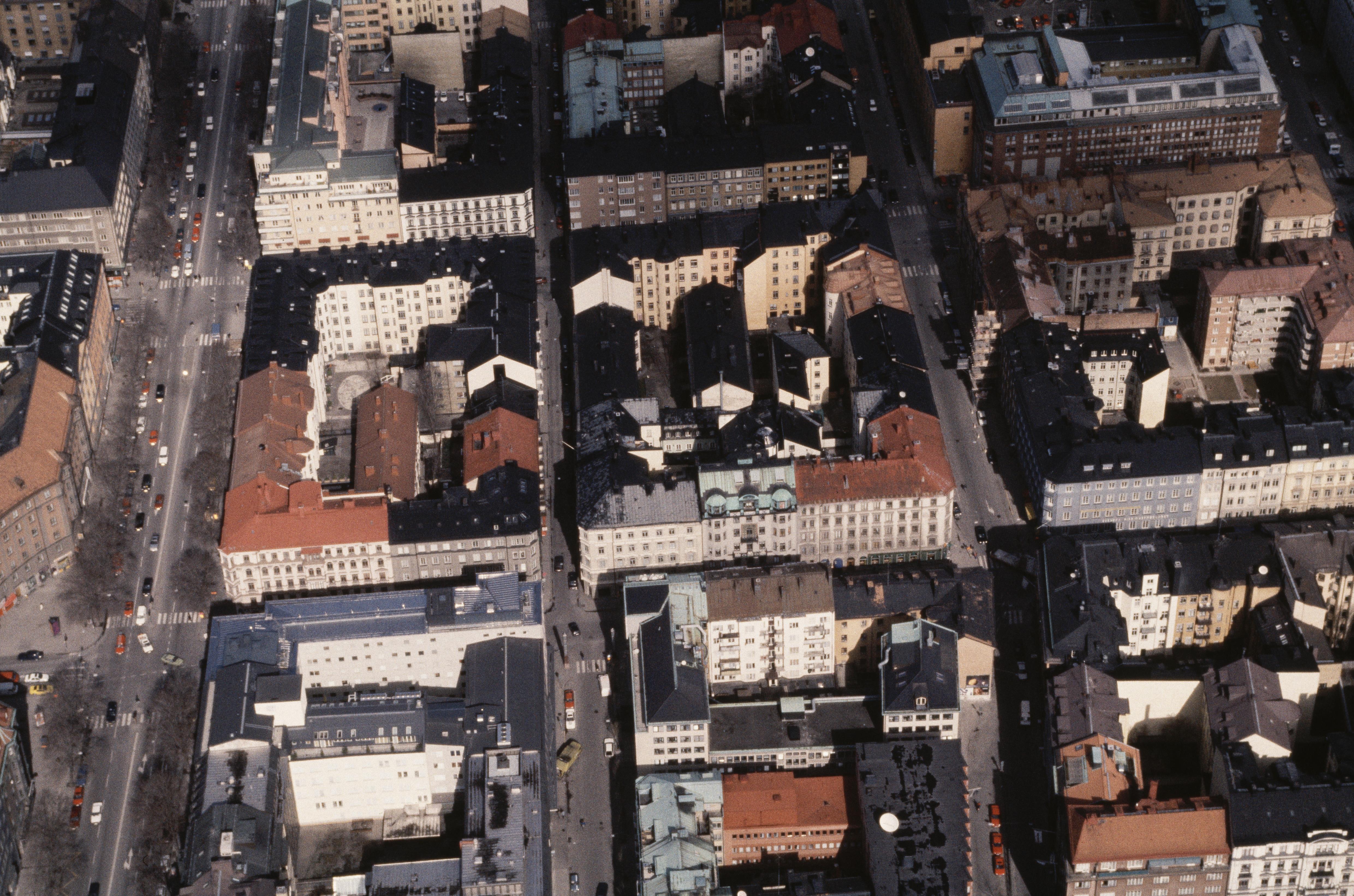 Beskrivning: Norrmalm. Gatorna Sveavägen, Luntmakargatan, Döbelnsgatan, Rådmansgatan, Tegnérgatan m.fl. vid Kvarteret Jägaren m.m. Bilden är tagen mot (väderstreck): NNV