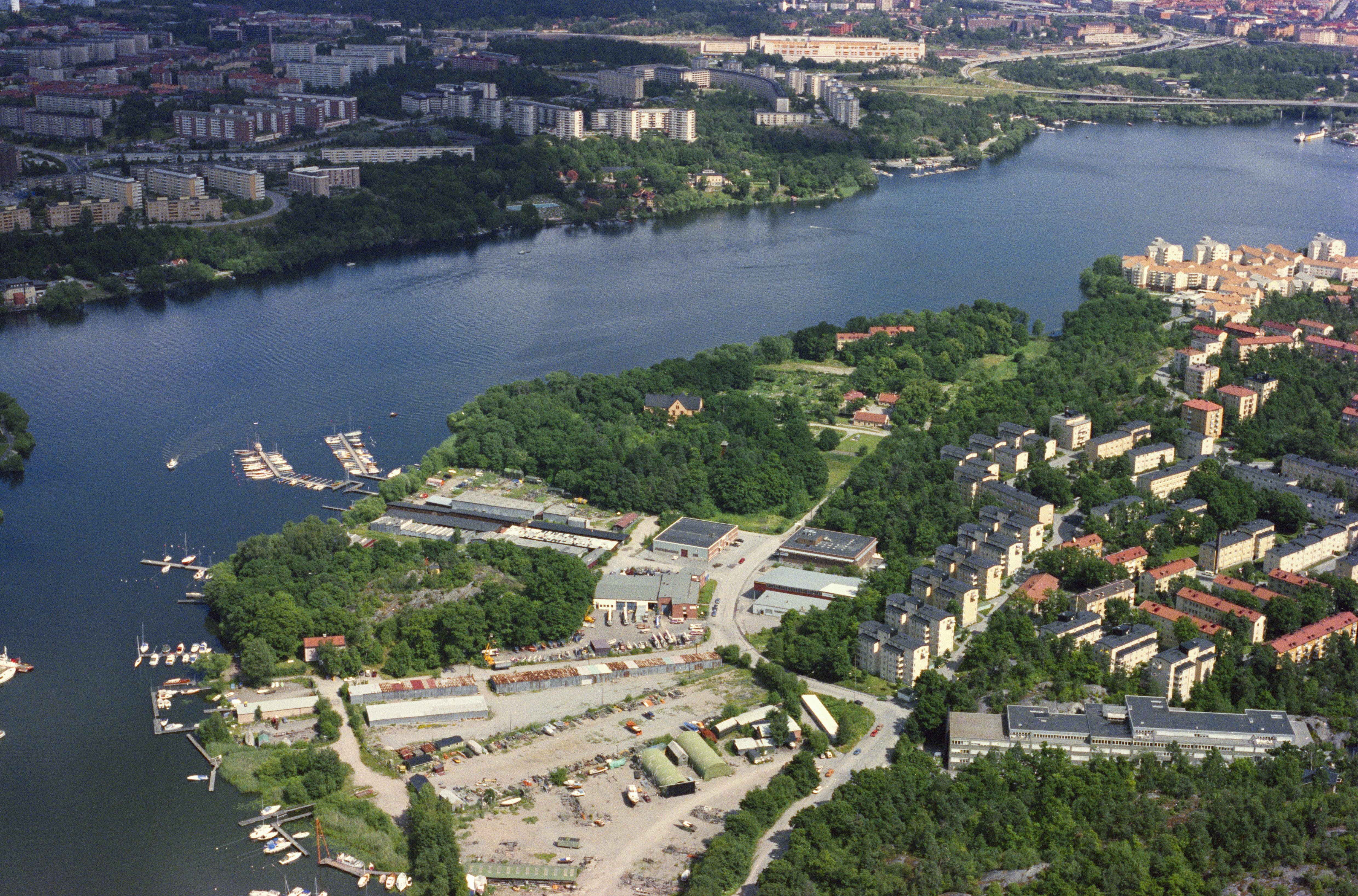 Beskrivning: Beskrivning: Stadsdelen Traneberg i Stockholms Västerort. Ulvsundasjön i Mälaren. Vid bildens mitt Johannelunds gård / herrgård. I bildens övre del området Huvudsta i Solna socken och Kungsholmen i Stockholms stad. Bilden är tagen mot (väderstreck): ONO Fotosyfte: Flygbildsdokumentation