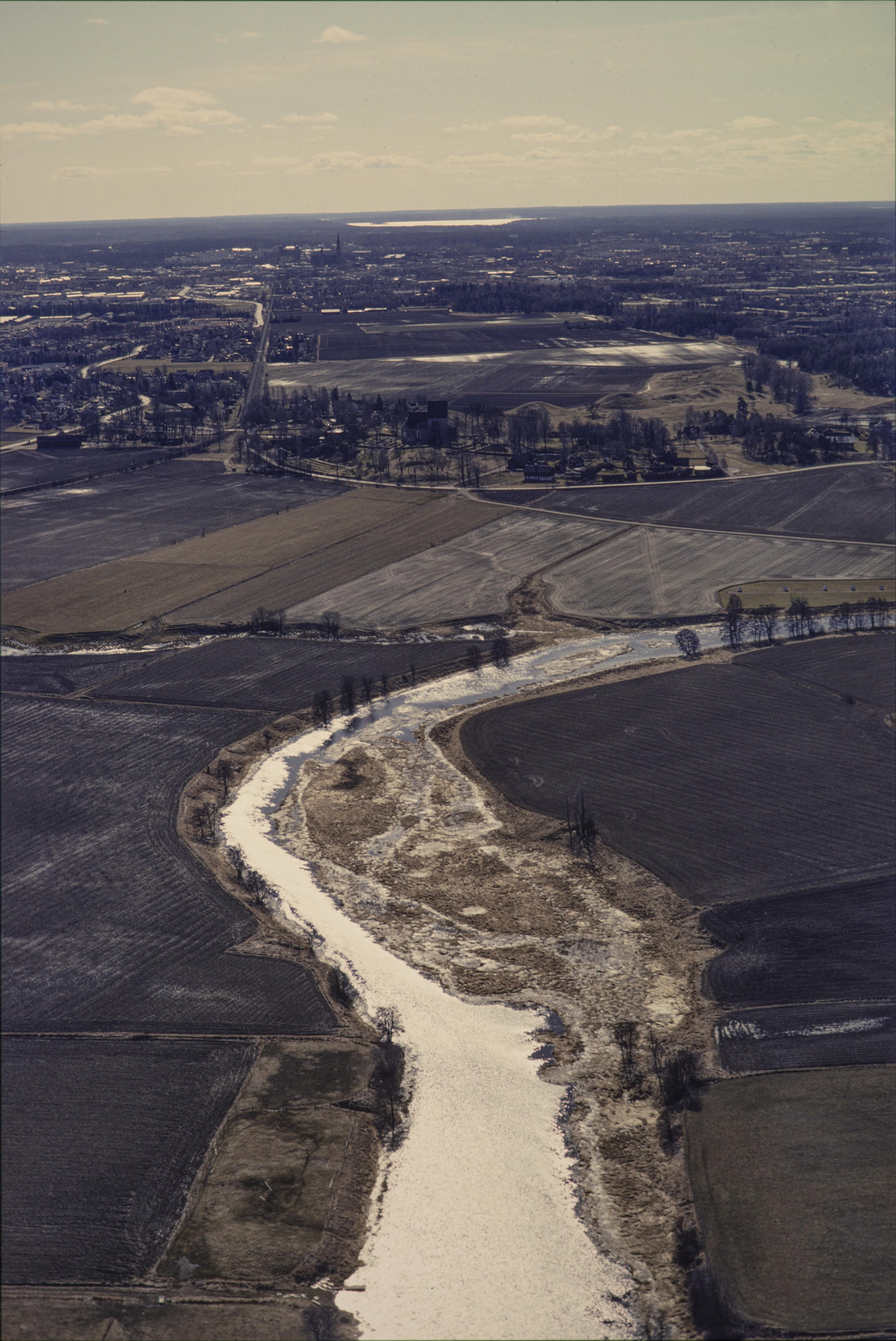 Beskrivning: Anmärkning (övrig): Riksintresse-nr/namn: C30 - Gamla Uppsala samt Fyrisåns och Björklingeåns dalgångar. Socken: Björklinge, Bälinge, Gamla Uppsala, Lena, Tensta och Ärentuna. Motivering: Centralbygd av stor betydelse för rikets historia med kontinuitet sedan bronsåldern och med monumentalt och traditionsbärande rikspolitiskt centrum under forn- och medeltid med kultplats, kungsgård och Sveriges första ärkebiskopssäte. (Fornlämningsmiljö, Kyrkomiljö, Slottsmiljö). - Uttryck för riksintresset: Landets tätaste och mest omfattande bestånd av skärvstenshögar och boplatslämningar från bronsåldern belägna i ådalgångarna. Gamla Uppsala med kungshögar och gravfält från järnåldern, lämningar av kungsgård och tidigmedel(…) Texten i detta fält har förkortats vid migrering till e-arkivet. Se filbilagan extra.xml för fullständig information under note_archivist. Beskrivning: Fyrisåns dalgång. I bildens övre del Gamla Uppsala kyrka RAÄnr Uppsala 774, Kungshögarna gravfält Uppsala 123:1, boplats Uppsala 263:1 m.fl. Bilden är tagen mot (väderstreck): S Fotosyfte: Flygbildsdokumentation