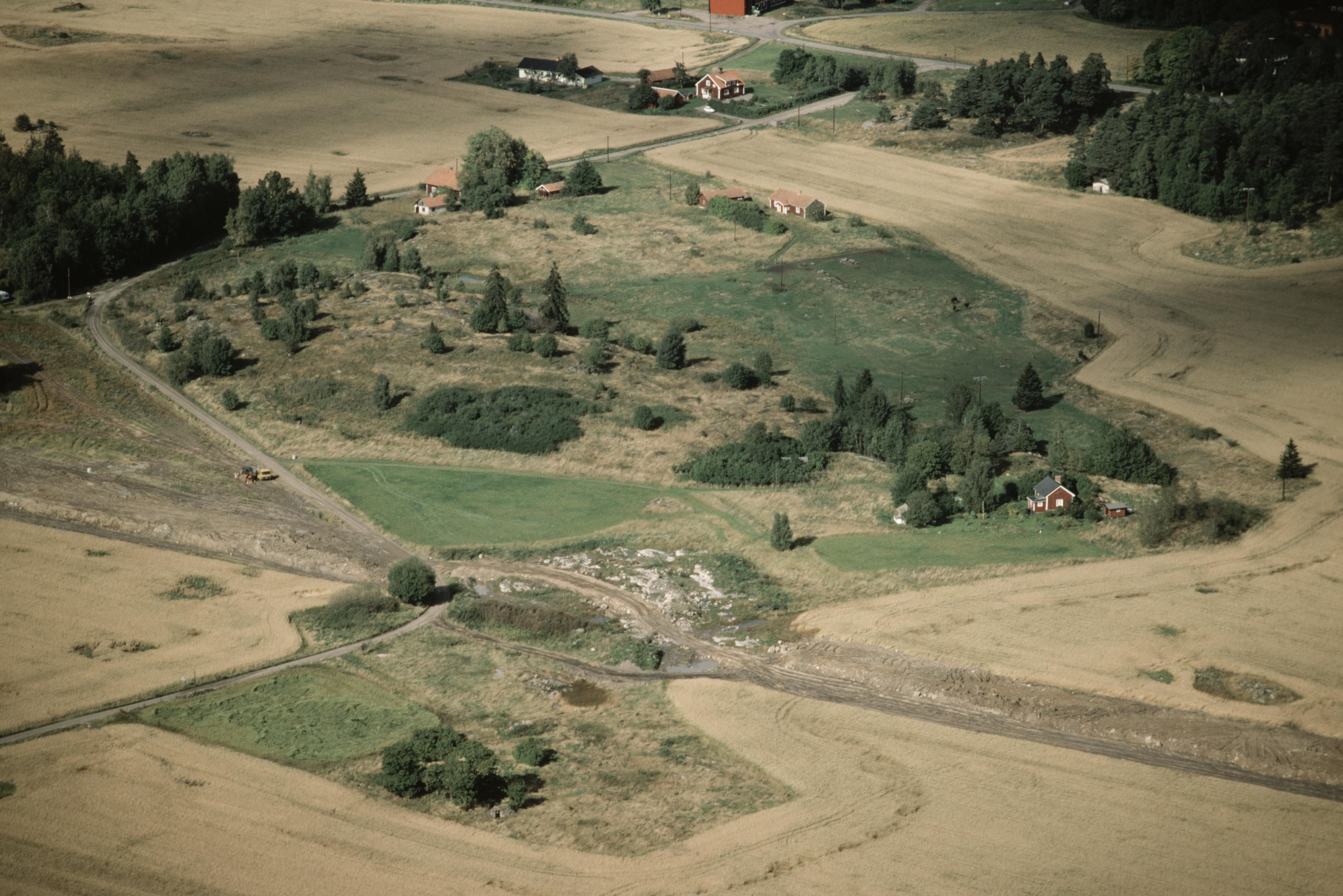 Beskrivning: Arkeologiska undersökningar innan bygge av väg E18 vid Apalle, Högsta och Pollista. Vid bildens mitt gravfält Dragonbacken RAÄnr Övergran 9:1 m.fl. och Pollista gamla tomt Övergran 228:1. Bilden är tagen mot (väderstreck): NV