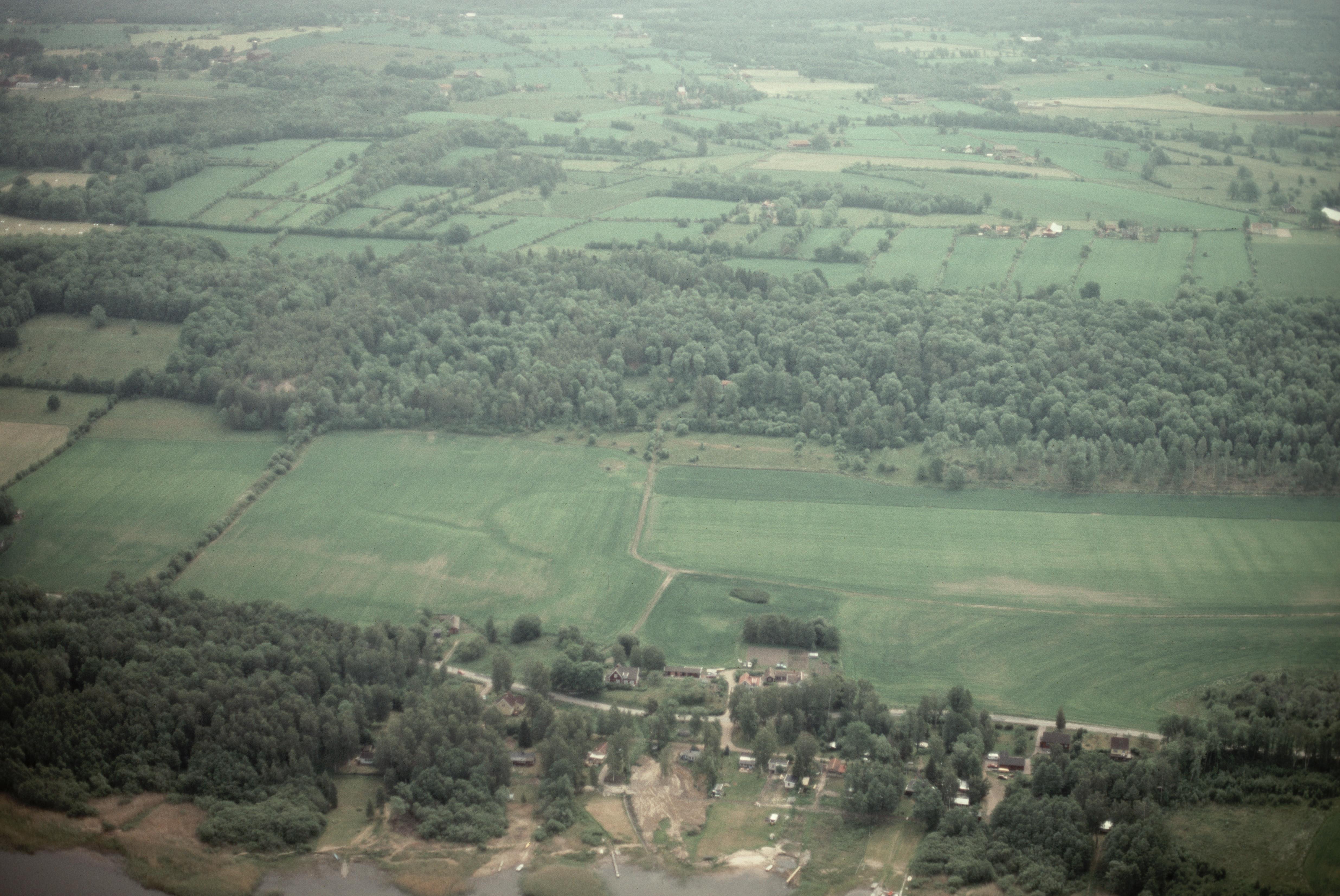 Beskrivning: Sjöhaga vid sjön Lången, Bytomt RAÄnr Berg 116:1 och industrilämningar Berg 61:2 m.fl. i bildens nedre del. I bildens övre del Bergs kyrka. Bilden är tagen mot (väderstreck): ONO