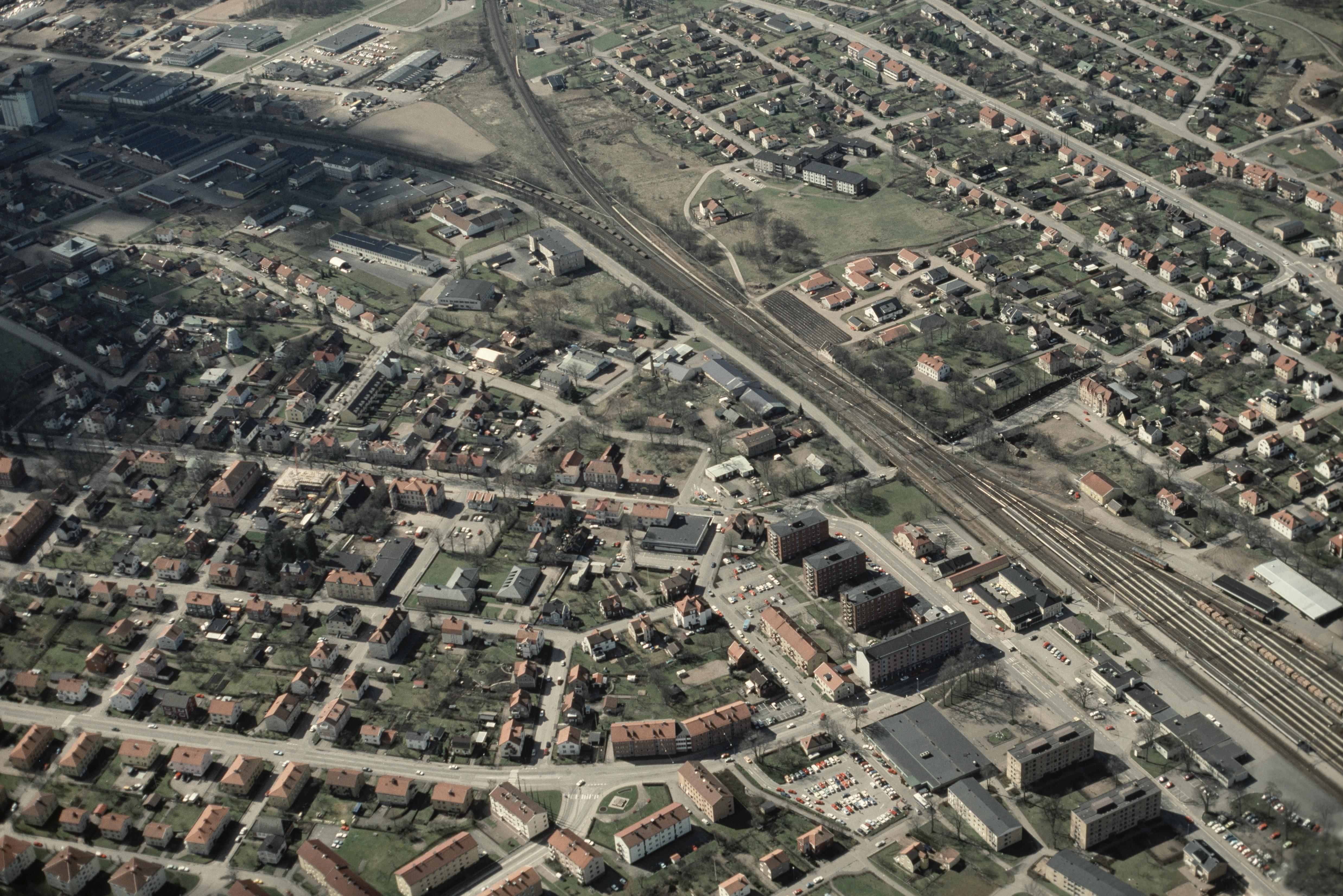 Beskrivning: Falköpings stad. Falköpings järnvägsanläggning. Bilden är tagen mot (väderstreck): SV