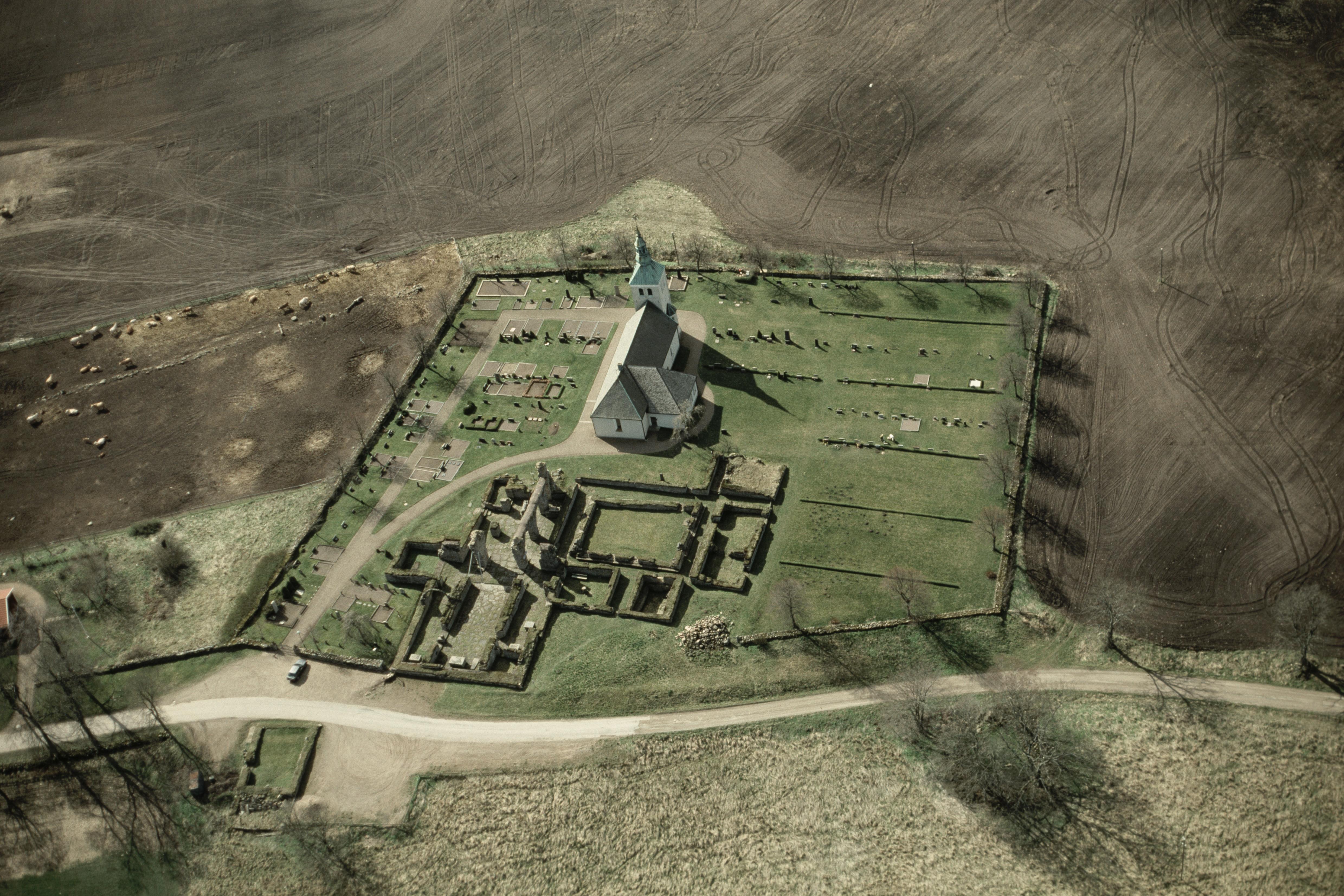 Beskrivning: Gudhems kyrka och klosterruin RAÄnr Gudhem 72:1. Bilden är tagen mot (väderstreck): VSV