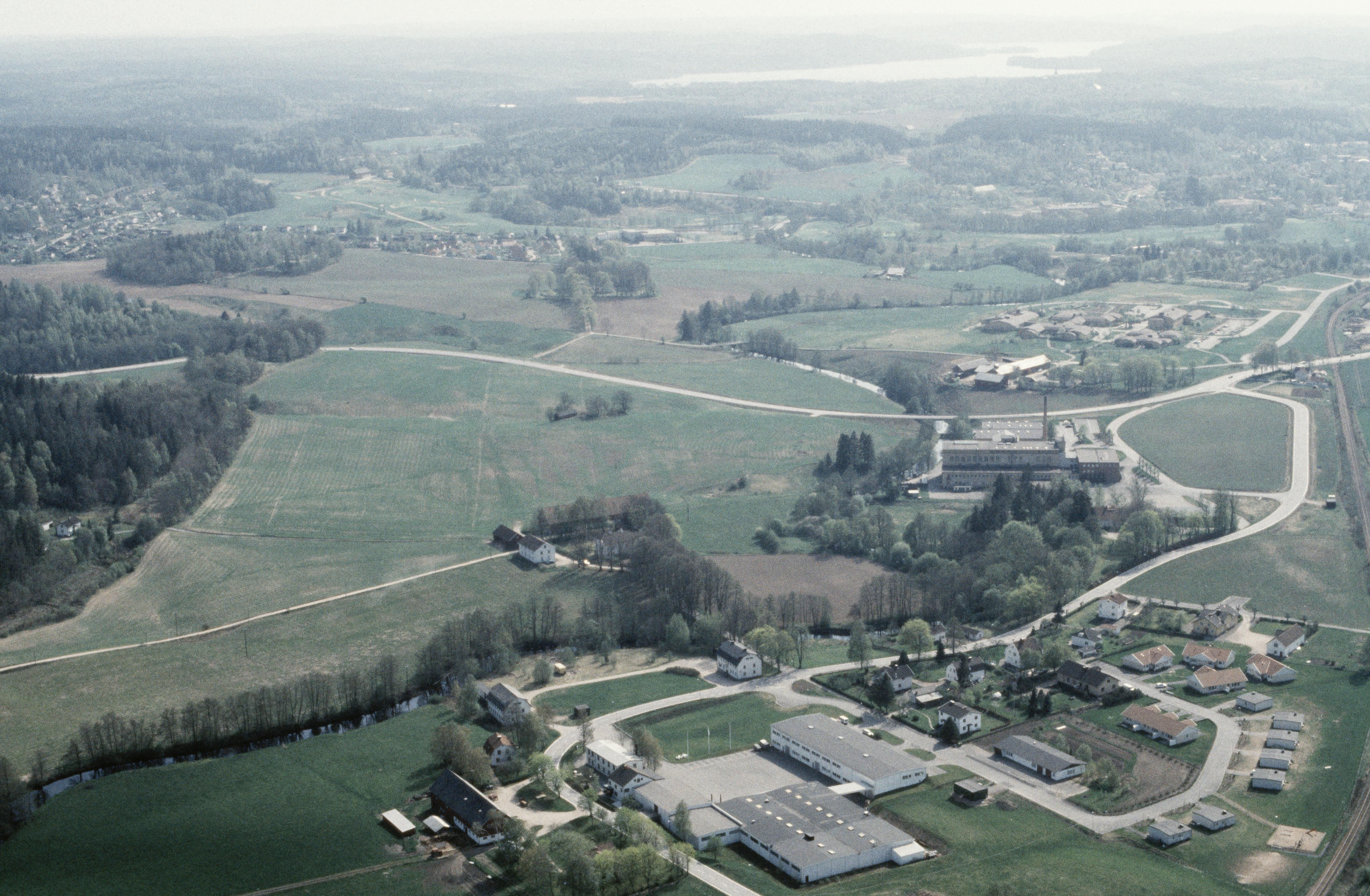 Beskrivning: Häggån i Häggådalen på gränsen mellan socknen Kinna och Örby (i bildens övre del). Förläggargårdar. Haga gård i Örby socken vid bildens mitt. Bilden är tagen mot (väderstreck): S