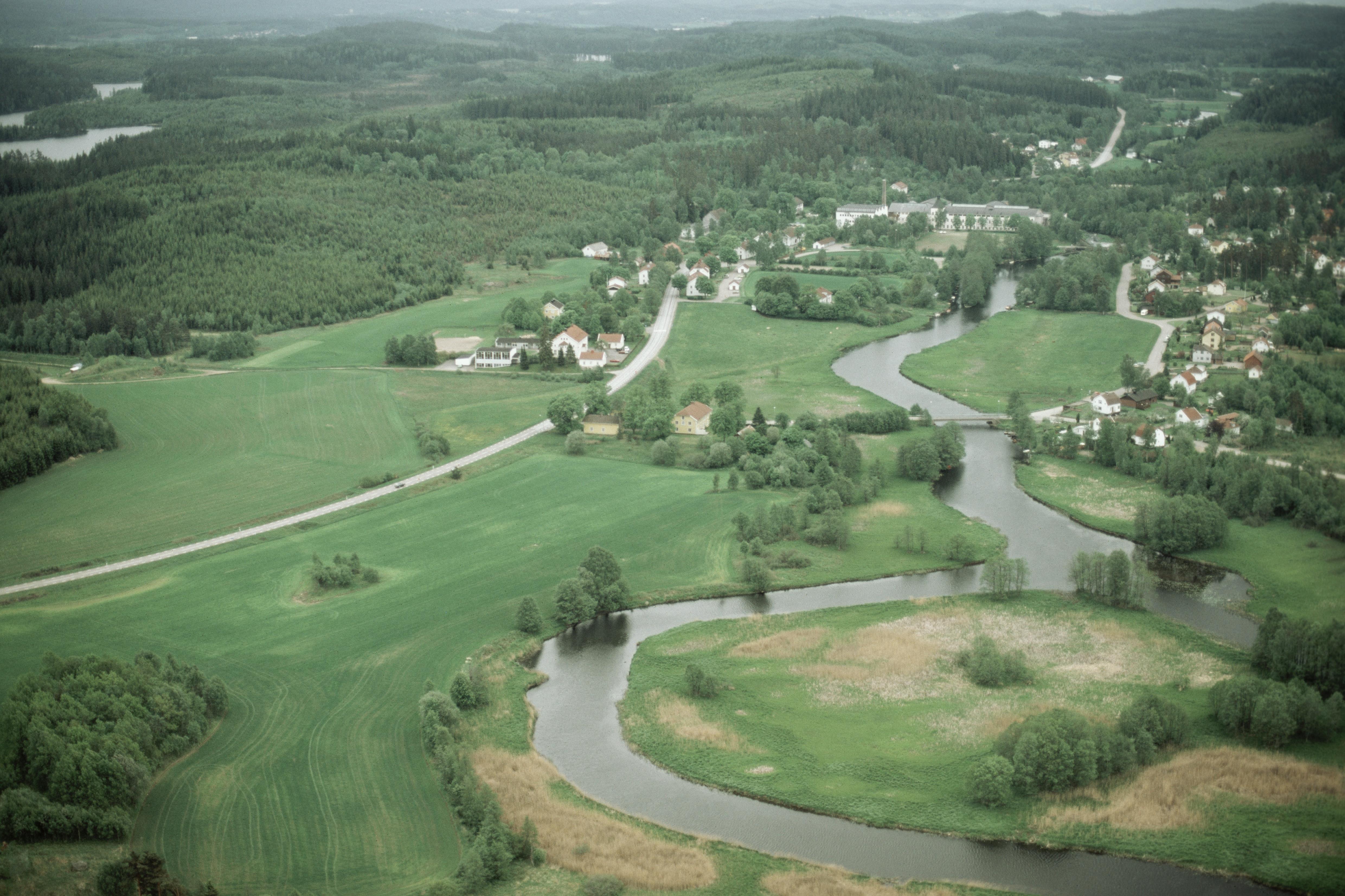 Beskrivning: Anmärkning (övrig): Riksintresse-nr/namn: P64 - Rydal. Socken: Kinna. Motivering: Bruks- och industrimiljö kring Rydals bomullsspinneri av stor betydelse för förståelsen av industrialismens genombrott och textilindustrins utveckling under 1800- och 1900-talet. - Uttryck för riksintresset: Ryds förläggargård, fabriksbyggnader och disponentbostad från 1850-talet, arbetarbostäder längs bruksgata från 1870-1910-talen, skola och minuthandel, ekonomibyggnader från tidigt 1900-tal, egnahemsområdet "Svalan", ett av Sveriges få s.k. stjärnhus, från 1949. - I området ingår även: Ett röse, en stensättning, en rest sten och en minnessten. [Texten uppdaterat av Riksantikvarieämbetet våren 2013.] Beskrivning: Rydals bruk i ån Viskans dalgång. Bilden är tagen mot (väderstreck): SV Fotosyfte: Flygbildsdokumentation