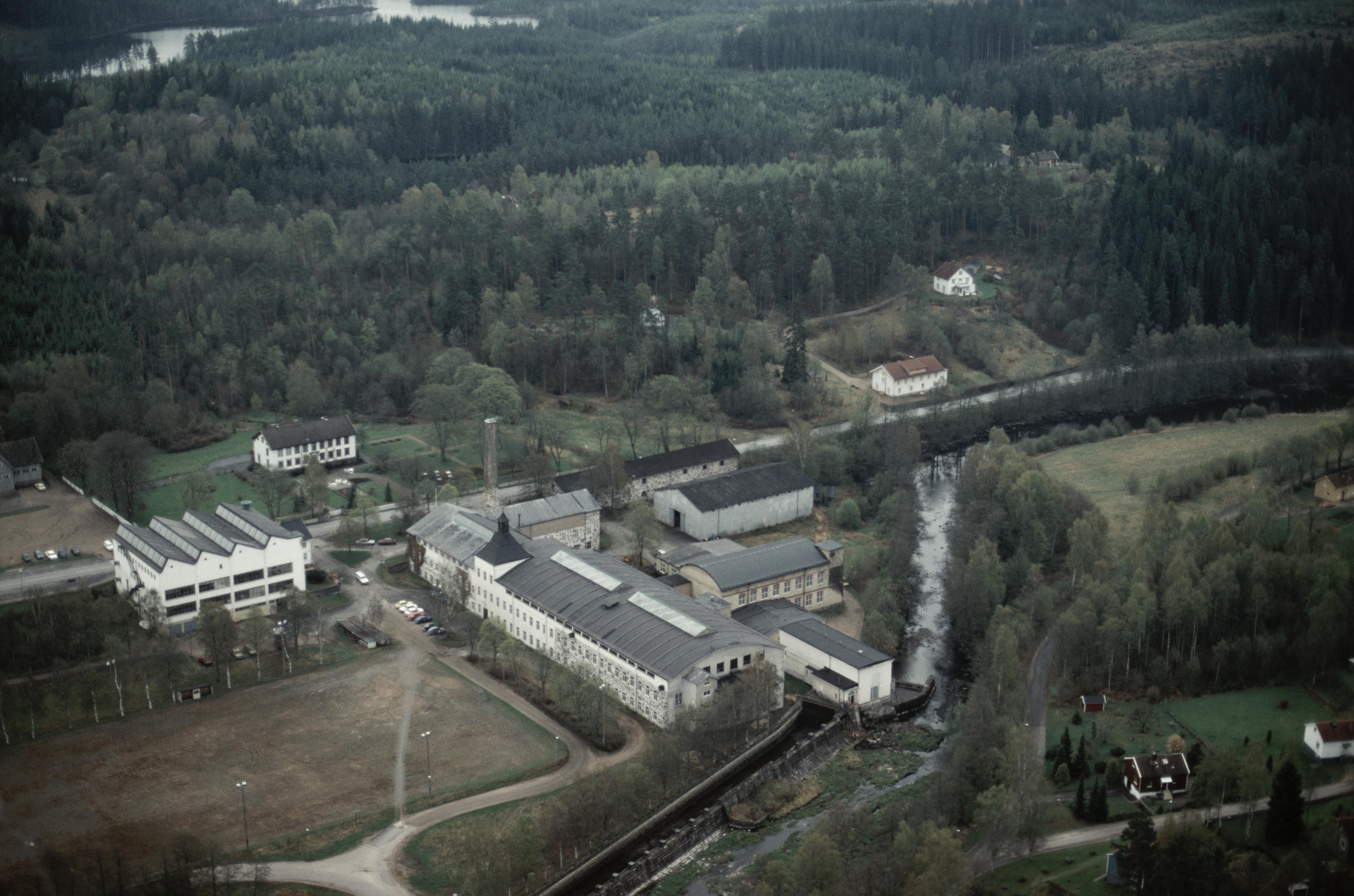 Beskrivning: Rydals bruk i ån Viskans dalgång. Rydals bomullsspinneri (textilindustri). Bilden är tagen mot (väderstreck): S