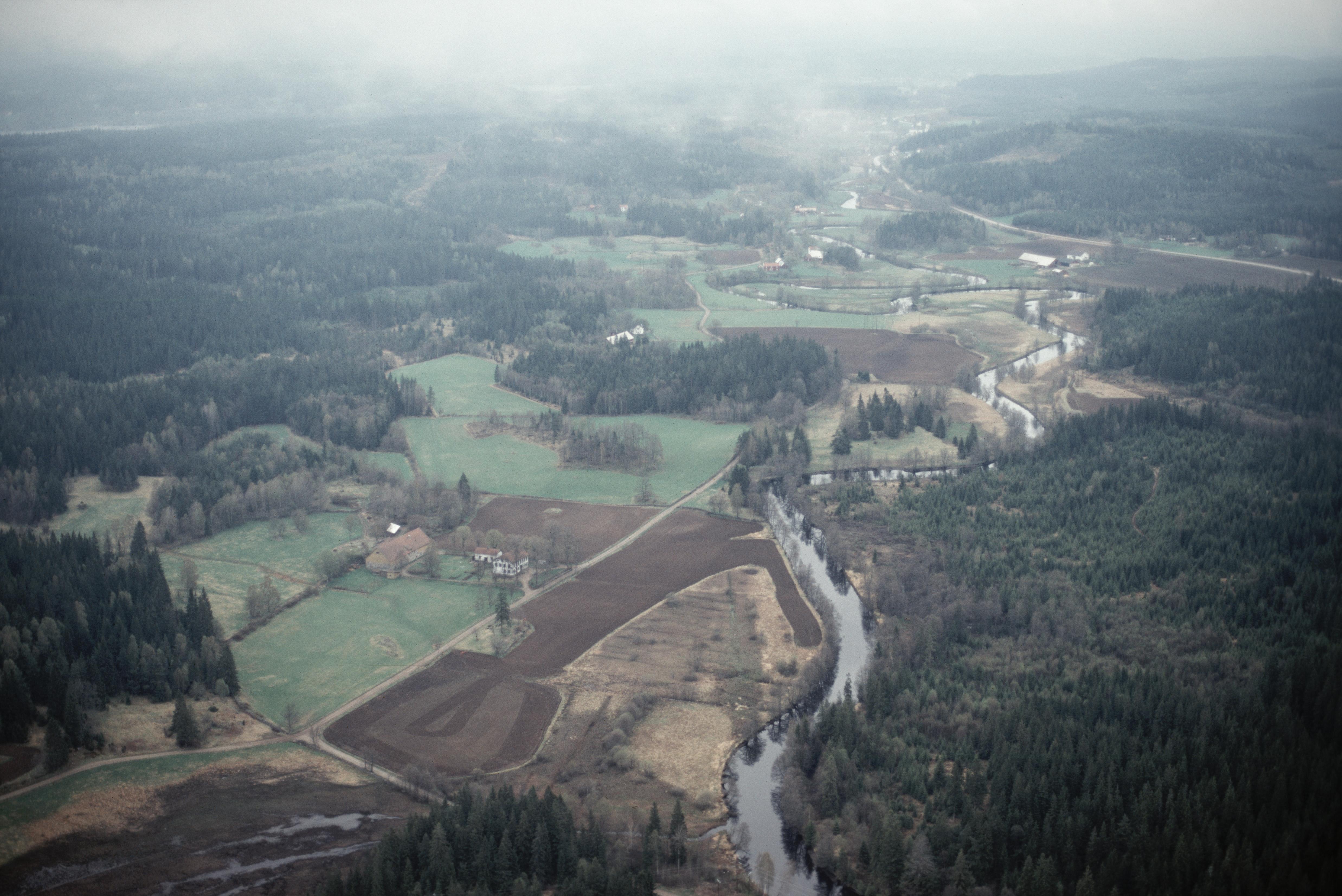 Beskrivning: I bildens nedre del till vänster Stämmemads förläggargård i ån Viskans dalgång. Bilden är tagen mot (väderstreck): NO