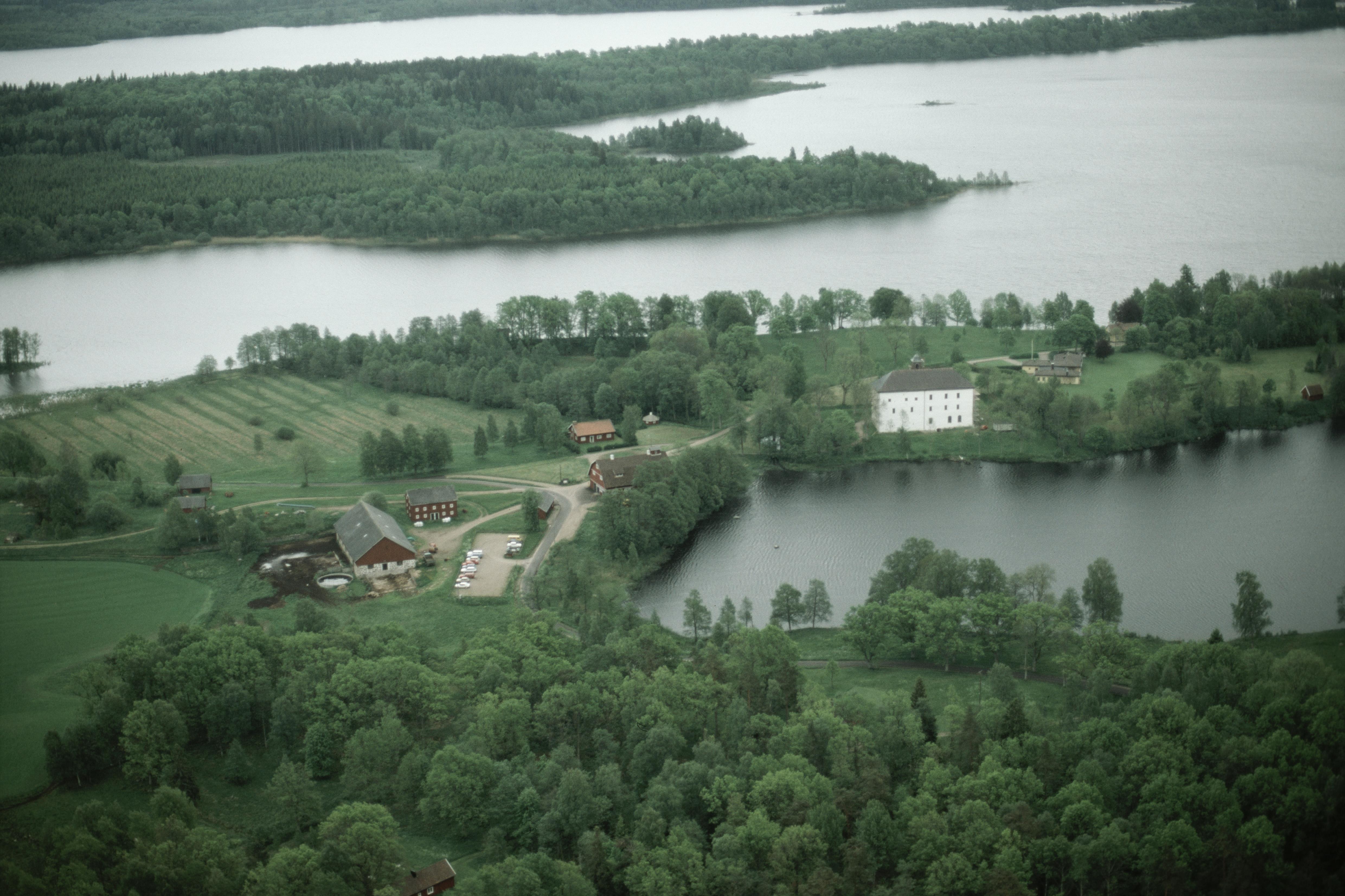 Beskrivning: Slottet Torpa Stenhus RAÄnr Länghem 36:1 vid Torpasjön i Åsunden. Bilden är tagen mot (väderstreck): SO