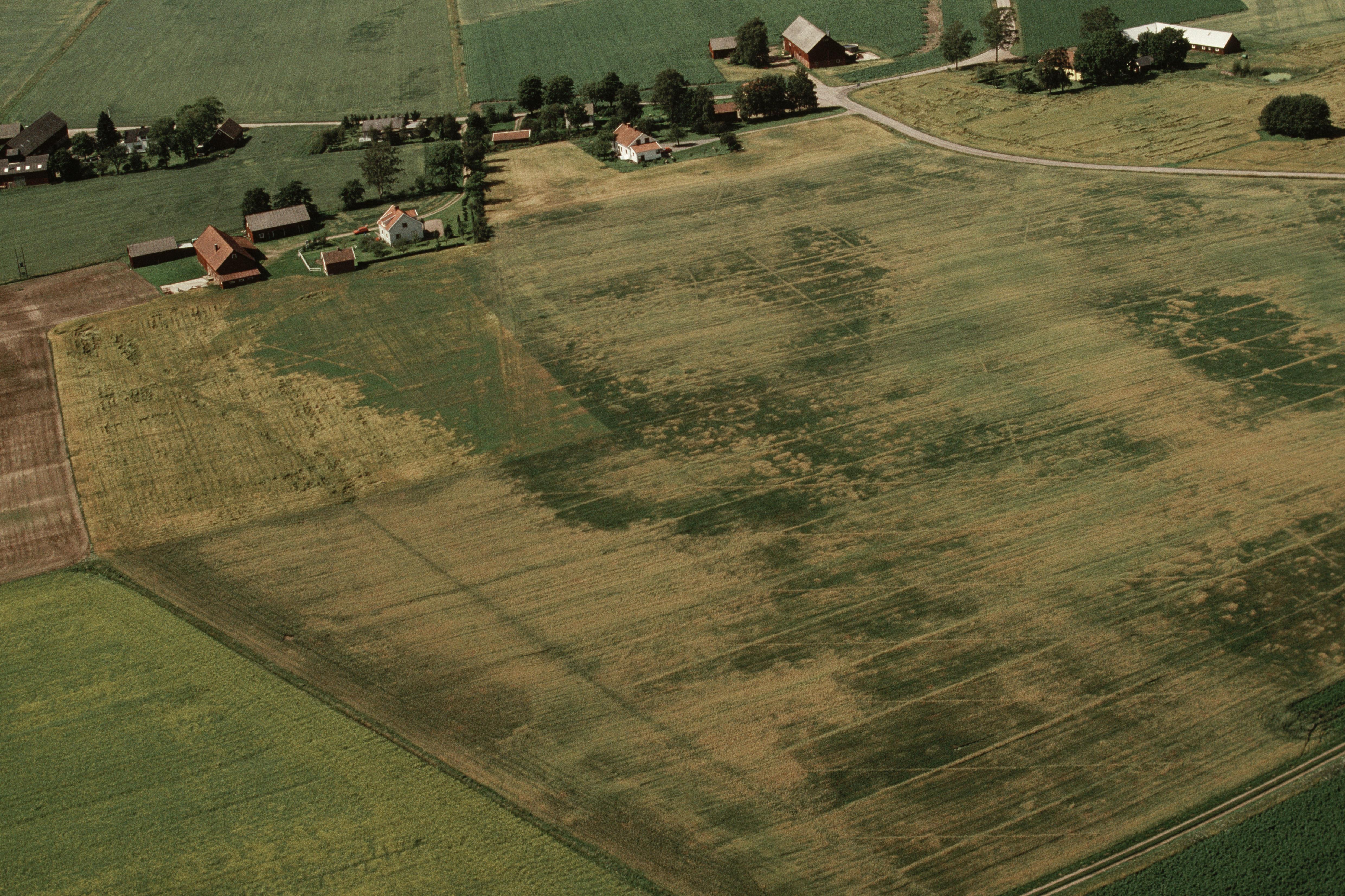 Beskrivning: Beskrivning: Cropmarks i åker vid Vässby efter bortodlade högen RAÄnr Längjum 64:1. Bilden är tagen mot (väderstreck): V Fotosyfte: Flygbildsdokumentation