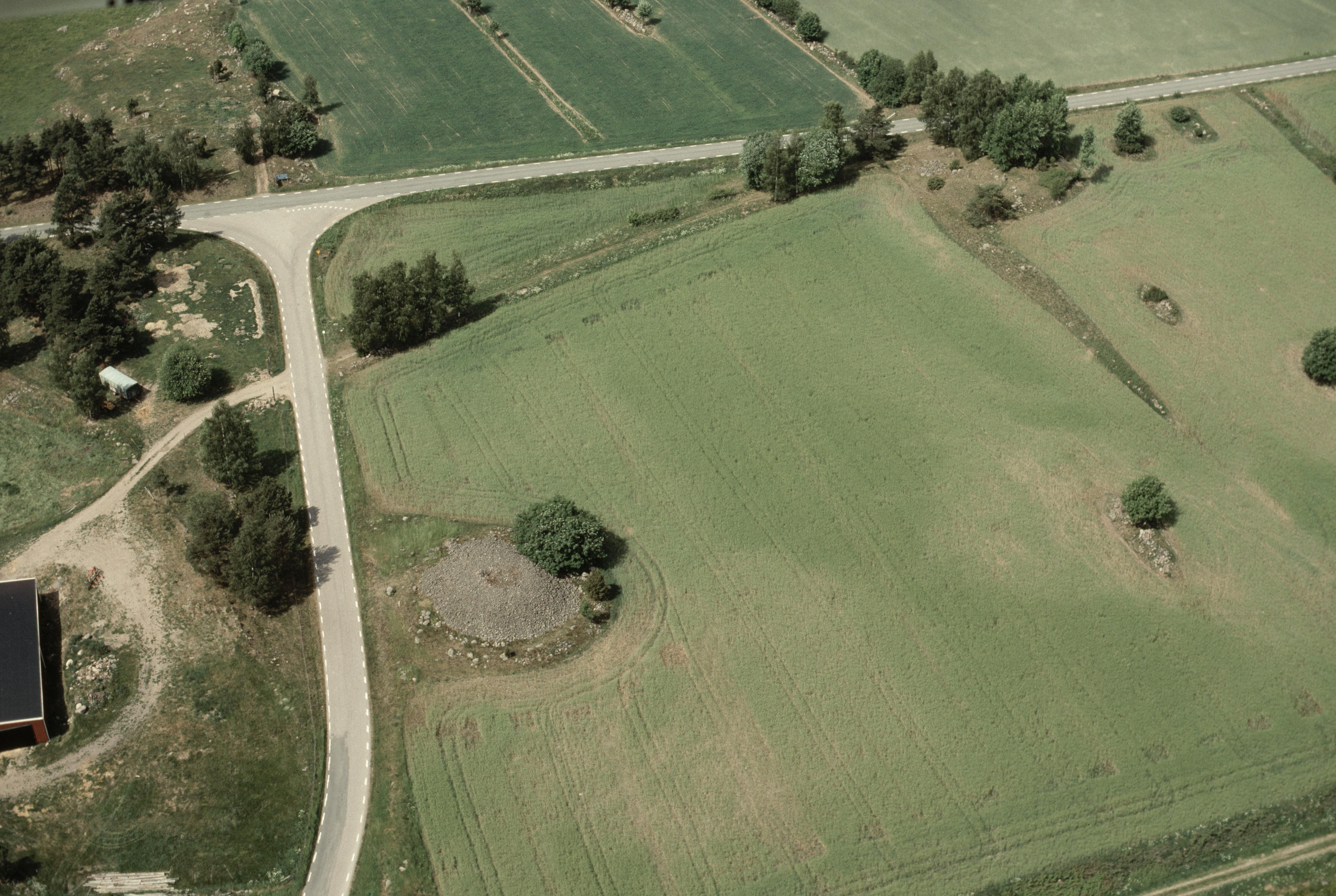 Beskrivning: Till vänster röset Stora Rör RAÄnr Odensåker 19:1. Uppe till höger gravfältet Kungabacken RAÄnr Odensåker 22:1. Bilden är tagen mot (väderstreck): VNV