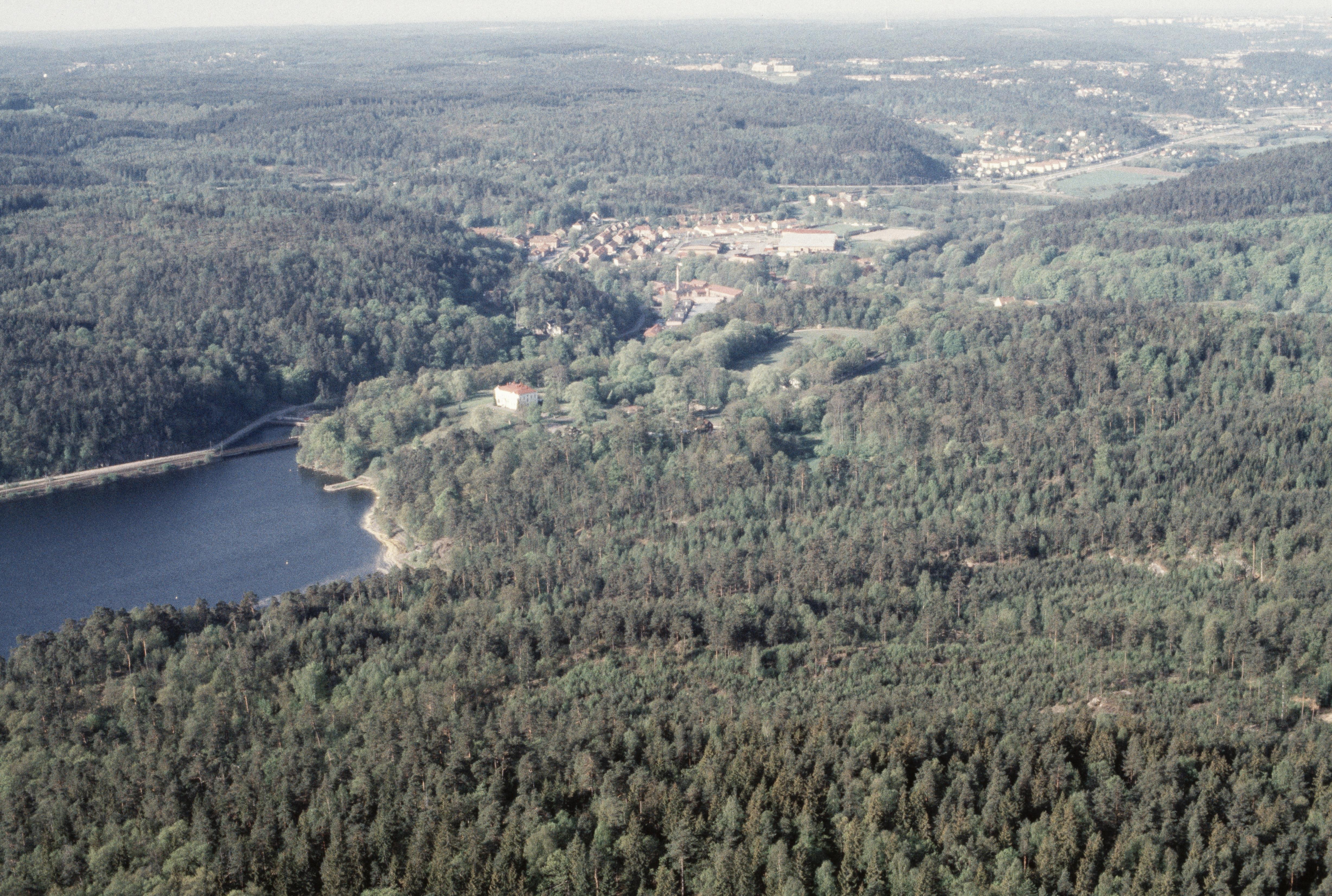 Beskrivning: Jonsereds tätort vid sjön Aspen. Jonsereds herrgård / säteri till vänster vid bildens mitt. Bilden är tagen mot (väderstreck): VSV