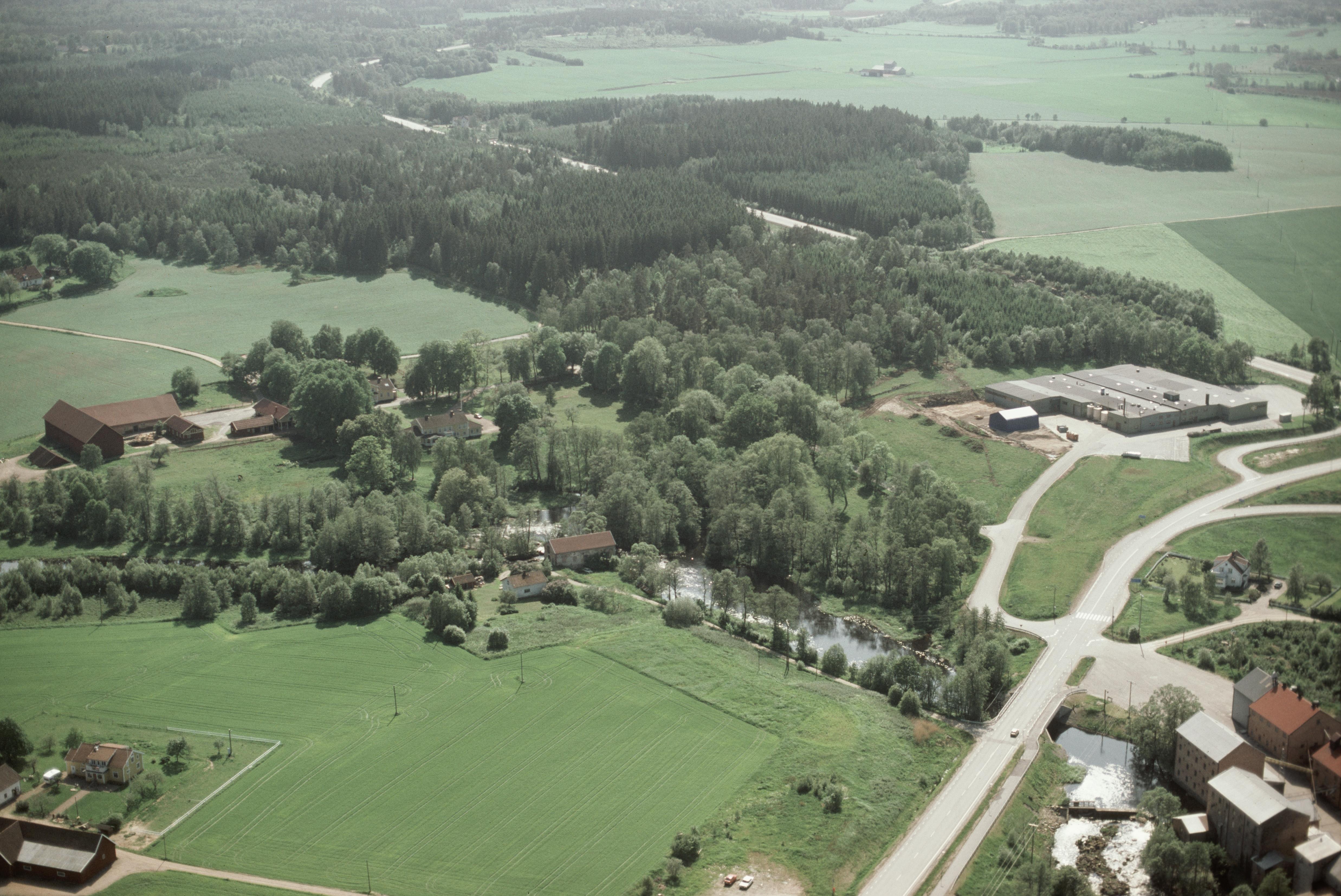 Beskrivning: Säveån markerar gränsen mellan socknen Kullings-Skövde och Siene (i bildens övre del). Wårgårda herrgård. I bildens nedre del kvarn RAÄnr Siene 228. Bilden är tagen mot (väderstreck): VSV
