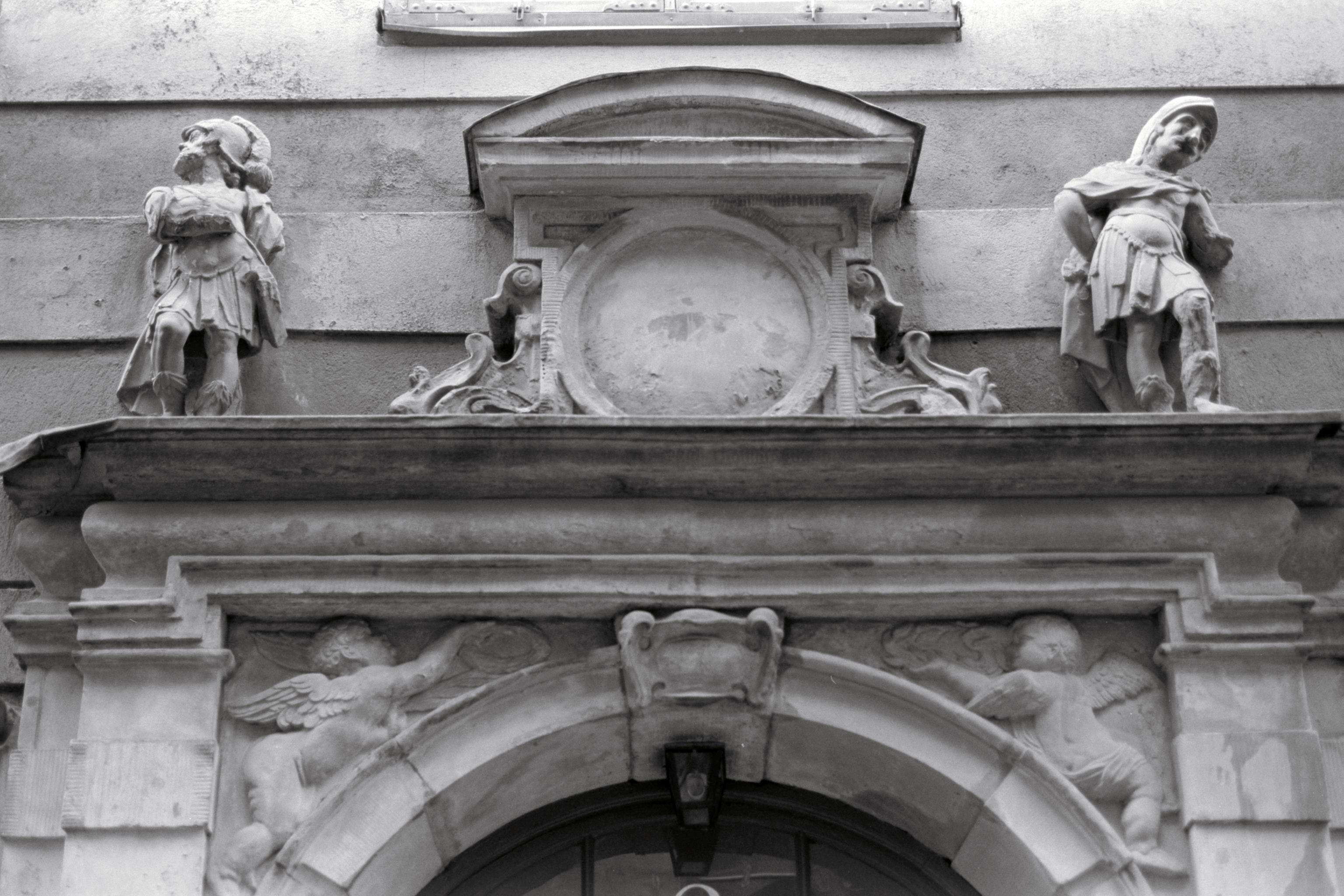 Portal. Portalöverstycke med krigare.