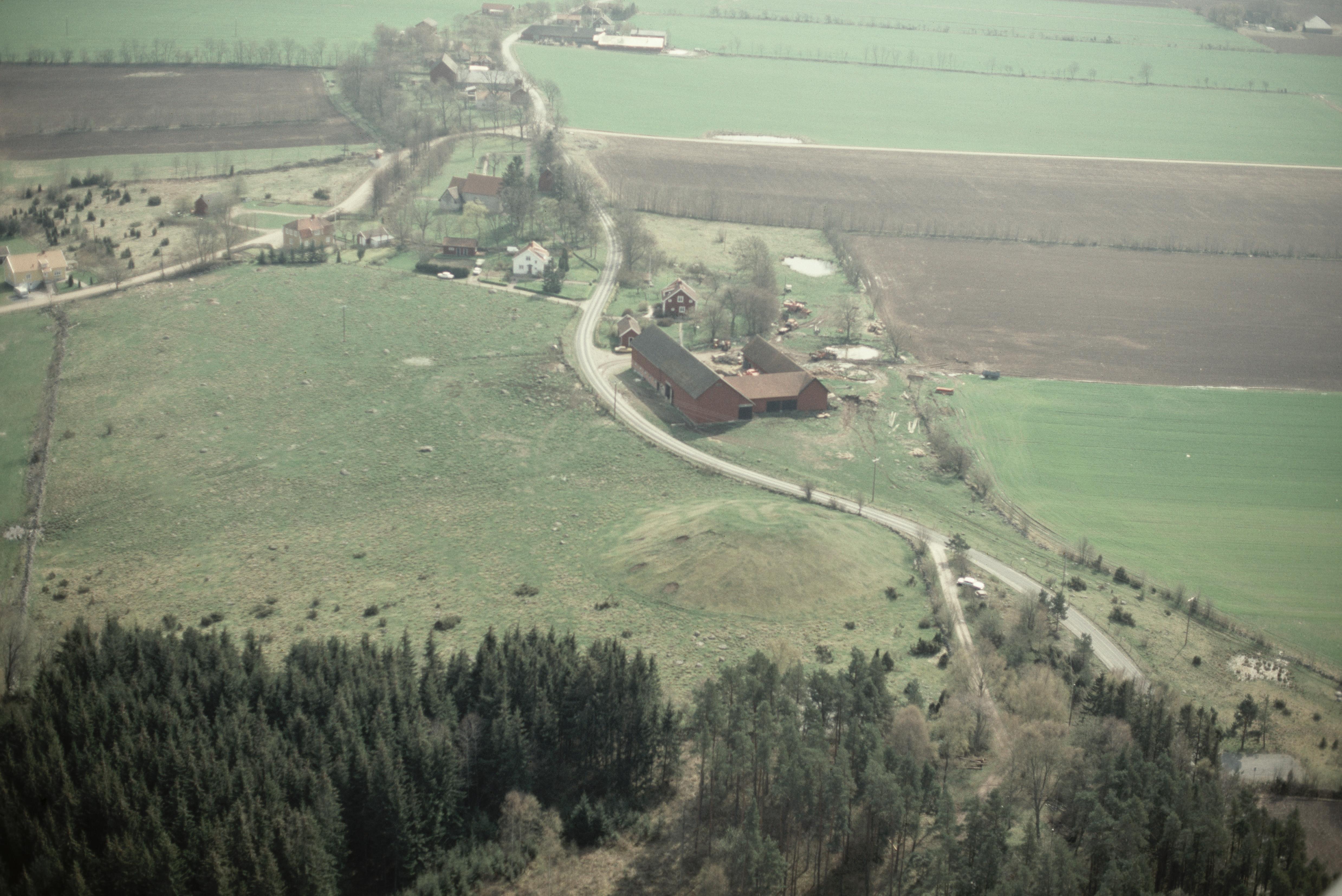 Beskrivning: Skalunda hög RAÄnr Skalunda 3:1 i bildens nedre del. Vid bildens mitt Skalunda kyrka. Bilden är tagen mot (väderstreck): SO