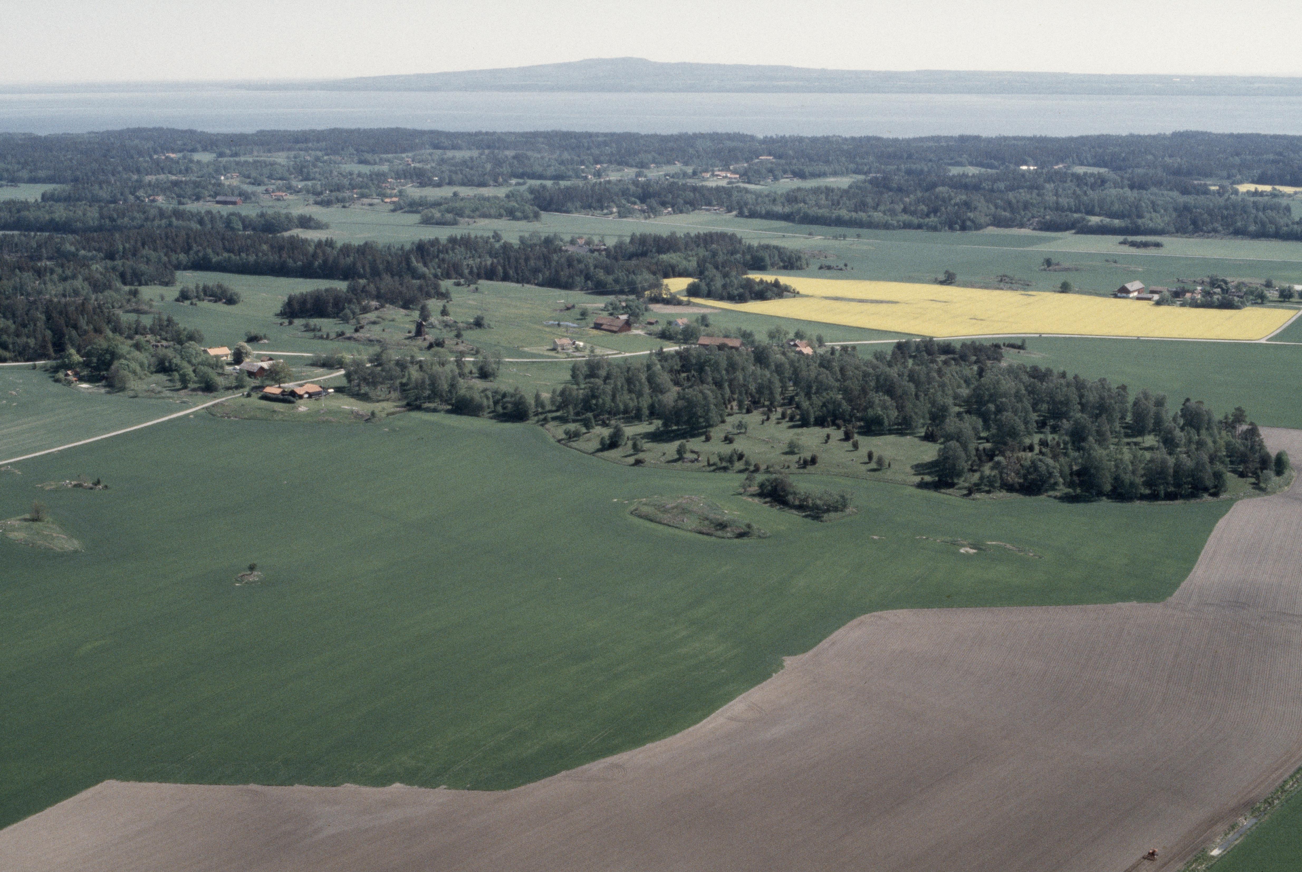 Beskrivning: Gravfält Stenhusbacken RAÄnr Sunnersberg 4:1, Sunnersberg 11:1 och fossil åkermark Sunnersberg 4:2-6 m.fl. Kinnerviken i bildens övre del. Bilden är tagen mot (väderstreck): Ö