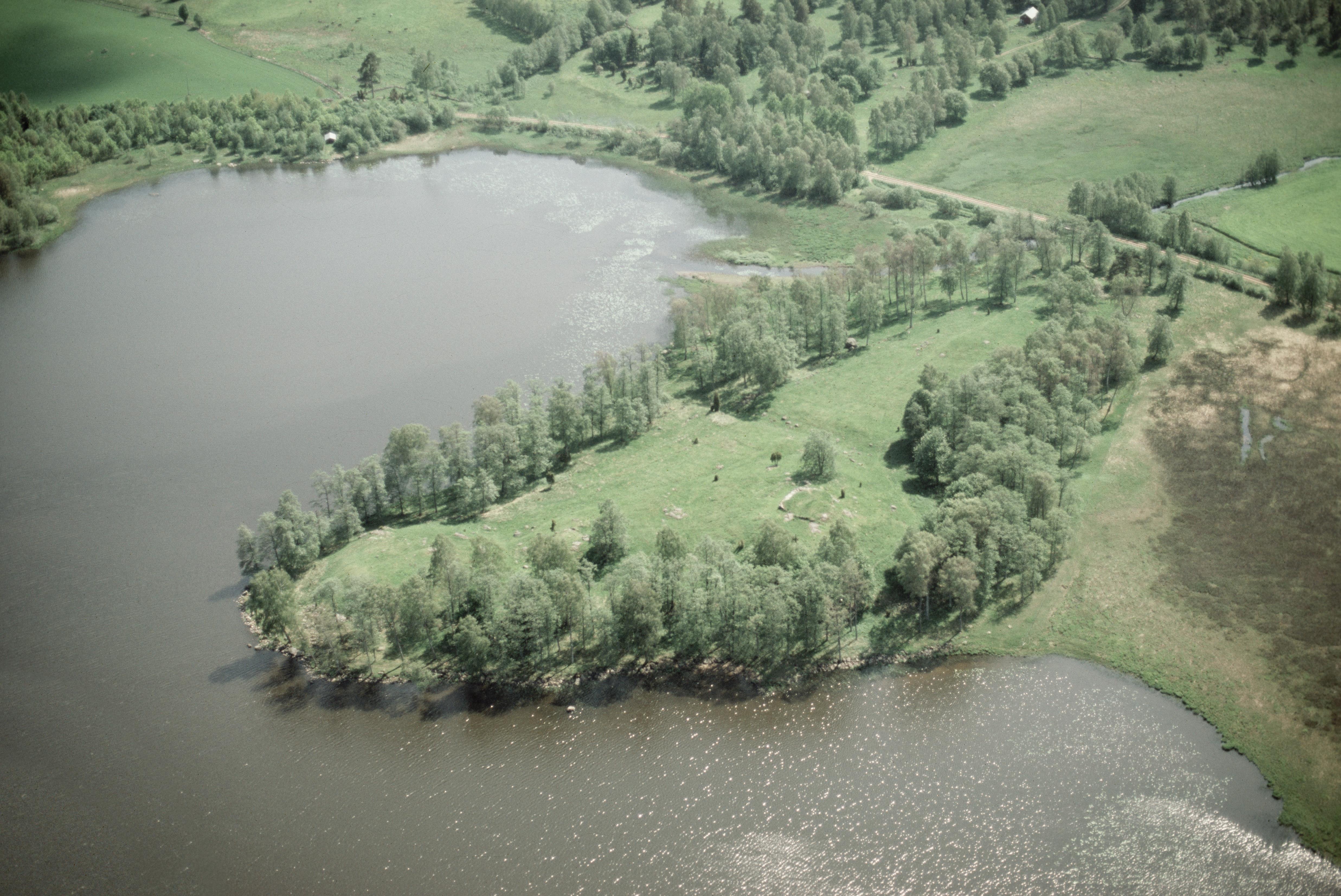 Beskrivning: Vädersholms borgruin RAÄnr Södra Ving 41:1 vid sjön Mogden. Bilden är tagen mot (väderstreck): SO