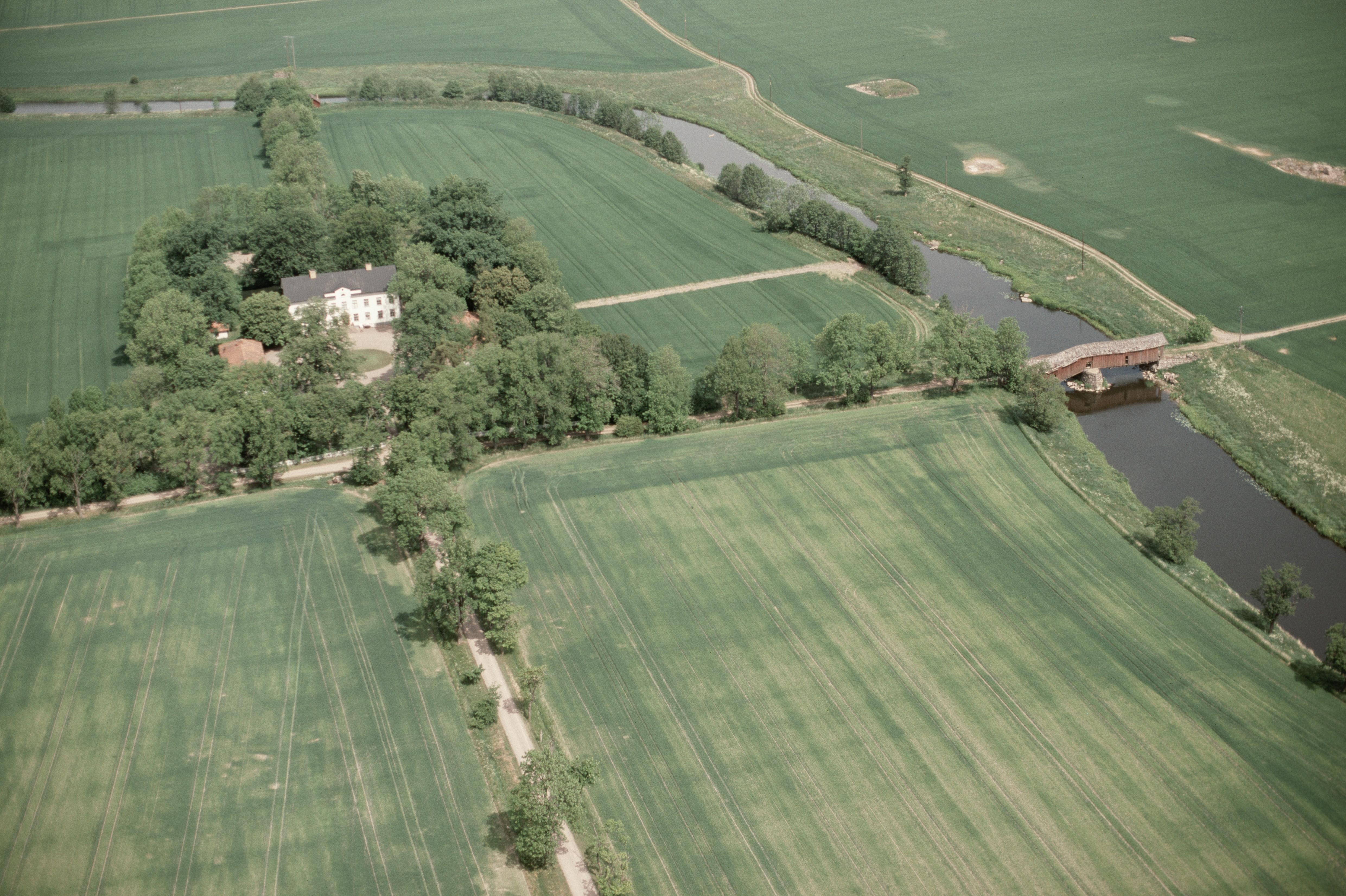 Beskrivning: Anmärkning (övrig): Riksintresse-nr/namn: R22 - Askeberga - Vad. Socken: Vad. Motivering: Centralbygd kring det forna vadstället över Tidan som givit häradet sitt namn i egenskap av centrum i ett medeltida förvaltningsdistrikt och vars betydelse redan under järnåldern tog sig monumentala uttryck. (Fornlämningsmiljö, Kyrkomiljö, Herrgårdsmiljö). - Uttryck för riksintresset: Landets näst största skeppsättning vid Askeberga, sockenkyrka med medeltida ursprung, ombyggd på 1700-talet, Vaholms herrgård med landets enda övertäckt bro, alléer, fullåkerlandskap. [Texten uppdaterat av Riksantikvarieämbetet våren 2013.] Beskrivning: Vaholms herrgård vid ån Tidan. Bilden är tagen mot (väderstreck): NNO Fotosyfte: Flygbildsdokumentation