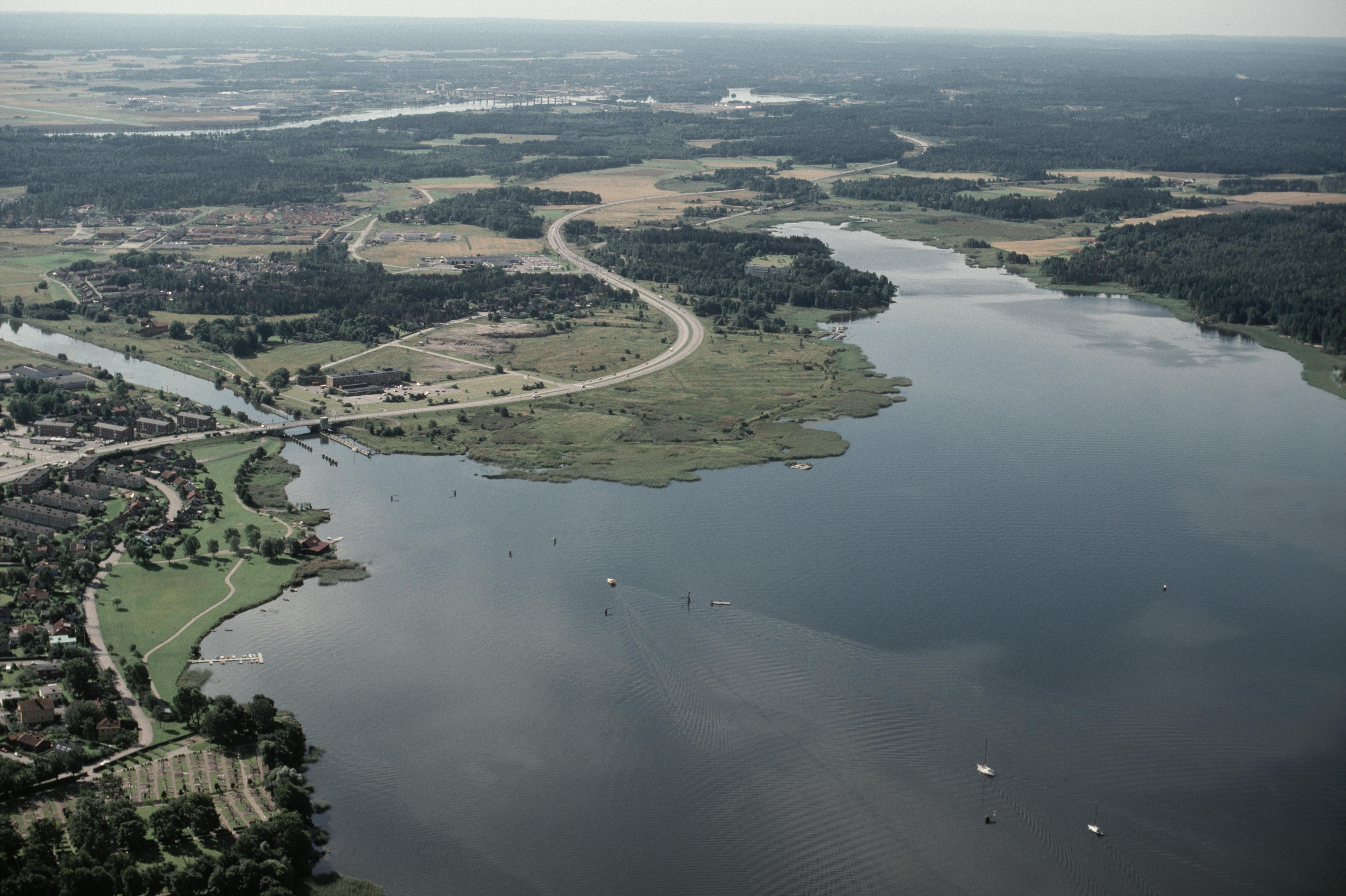 Beskrivning: Sjön Vassbottens södra del. Kanal Karls grav RAÄnr Vänersborg 23:1 till vänster och Vassända uppe till höger. Bilden är tagen mot (väderstreck): S
