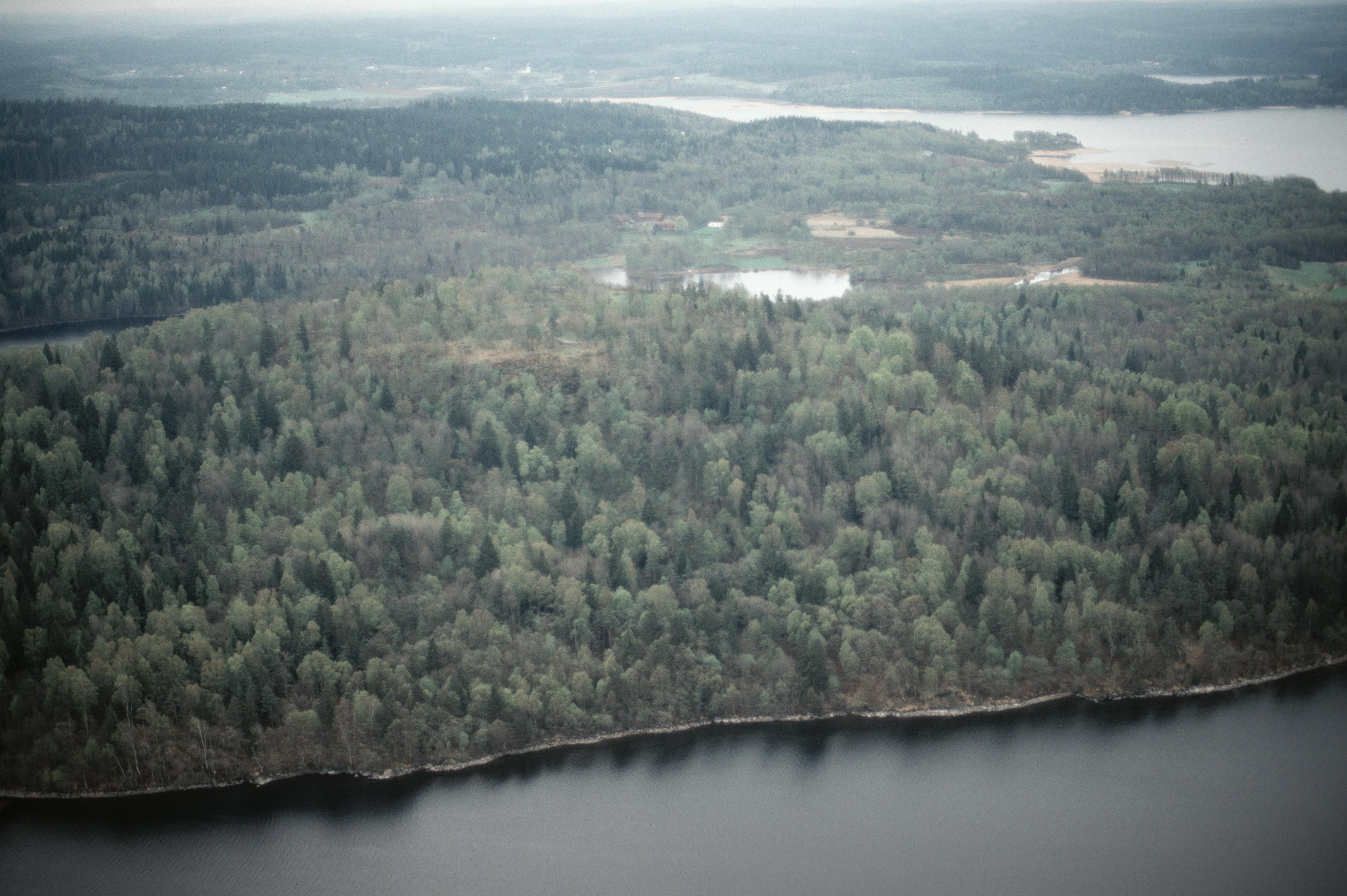 Beskrivning: Hyltenäs slottsruin / Seatons kulle RAÄnr Öxnevalla 32:1 på en udde mellan Västra och Östra Öresjön. Bilden är tagen mot (väderstreck): SV