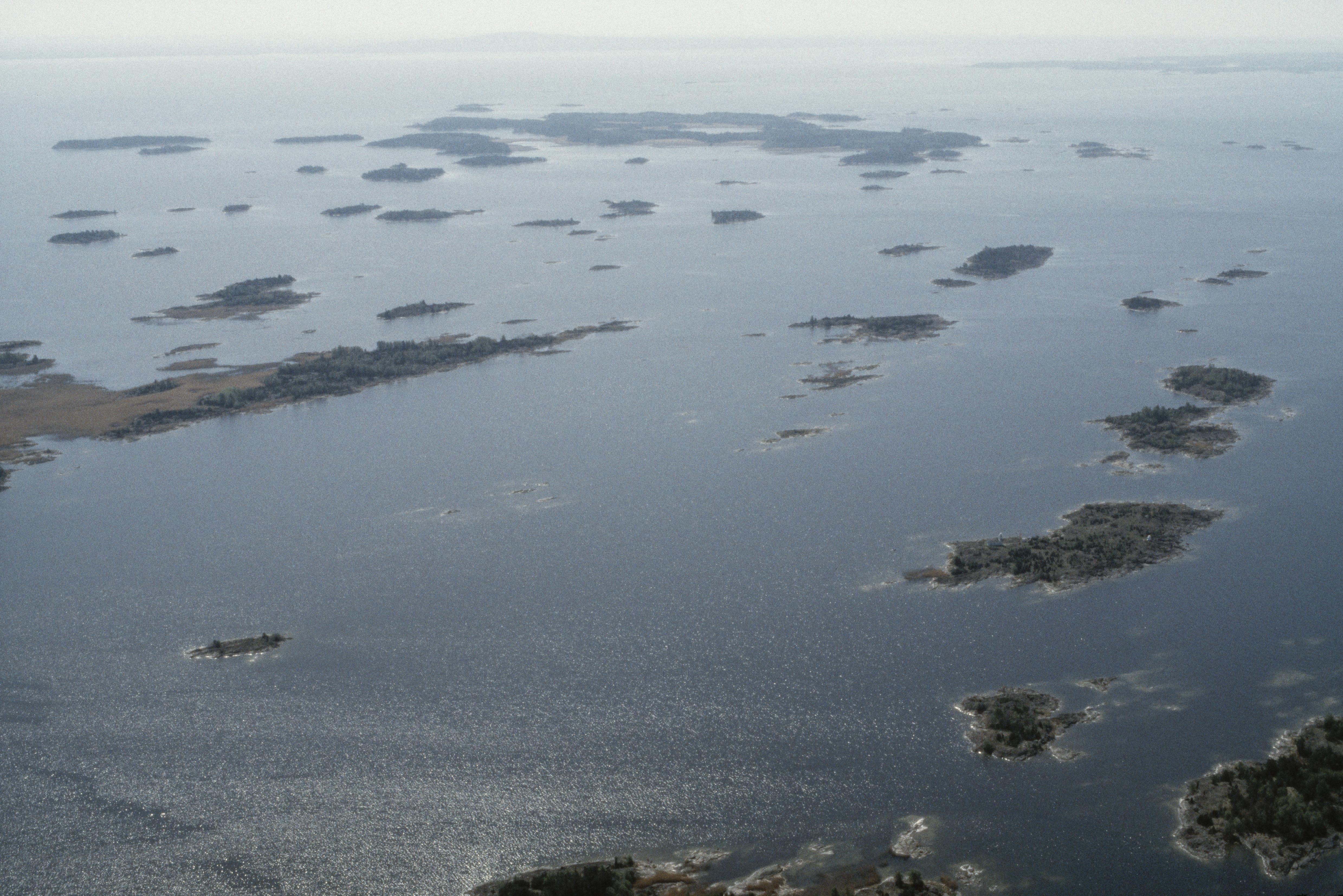 Beskrivning: Eskilsäters skärgård i Lurö naturreservat i sjön Vänern. Till höger om bildens mitt ön Stora Älvalen med sjömärke Eskilsäter 315. Husön i bildens övre del. Bilden är tagen mot (väderstreck): SO