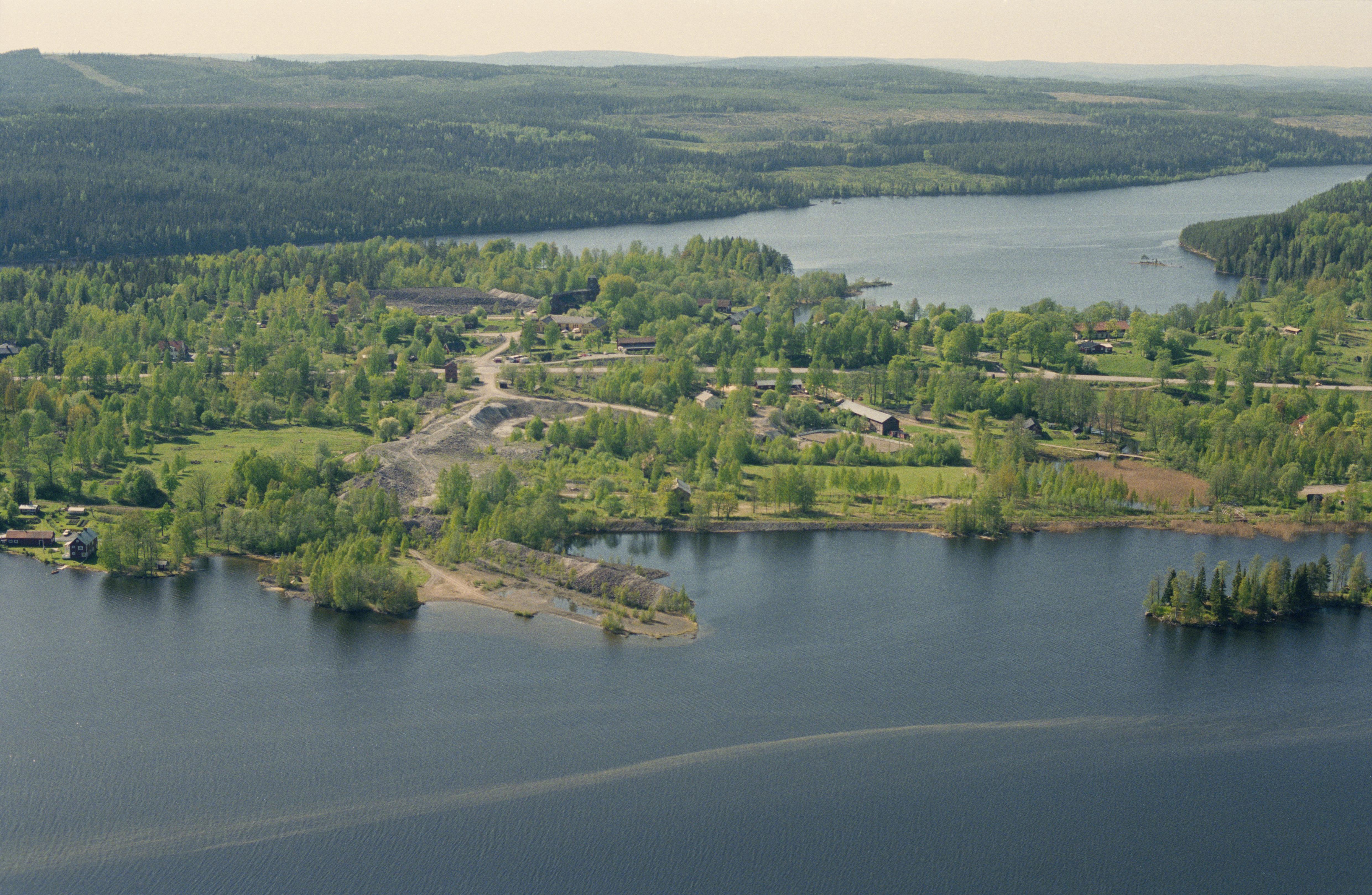 Beskrivning: Långban by mellan sjöarna Långban (i bildens nedre del) och Hyttsjön. Vid bildens mitt gruvområde RAÄnr Färnebo 548:1-6 och herrgården John Ericssongården, byggnadsminne RAÄnr Färnebo 557:1. Bilden är tagen mot (väderstreck): VNV