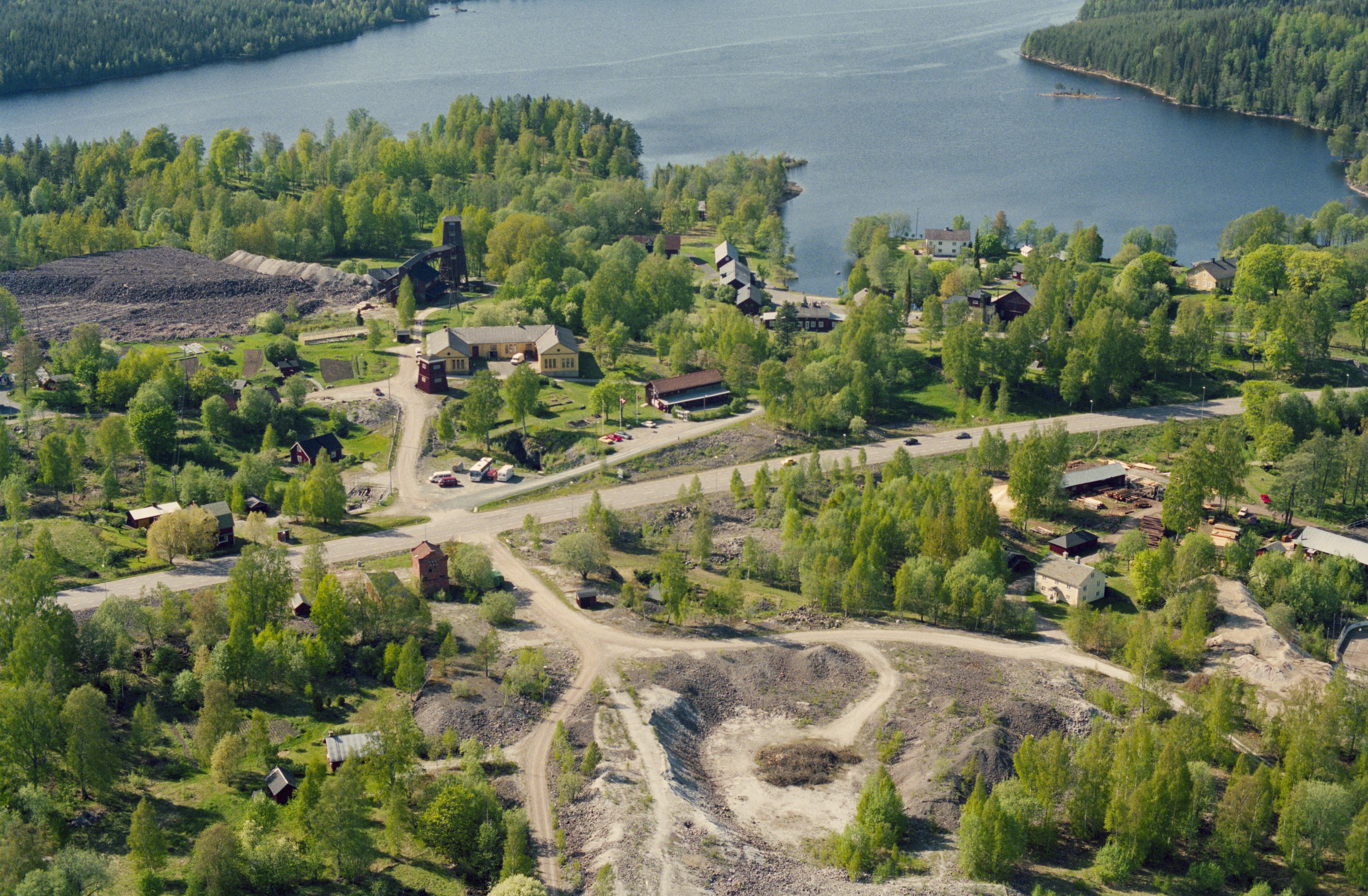 Beskrivning: Långban by mellan sjöarna Långban och Hyttsjön (i bildens övre del). Vid bildens mitt gruvområde RAÄnr Färnebo 548:1-6 och herrgården John Ericssongården, byggnadsminne RAÄnr Färnebo 557:1. Bilden är tagen mot (väderstreck): VNV