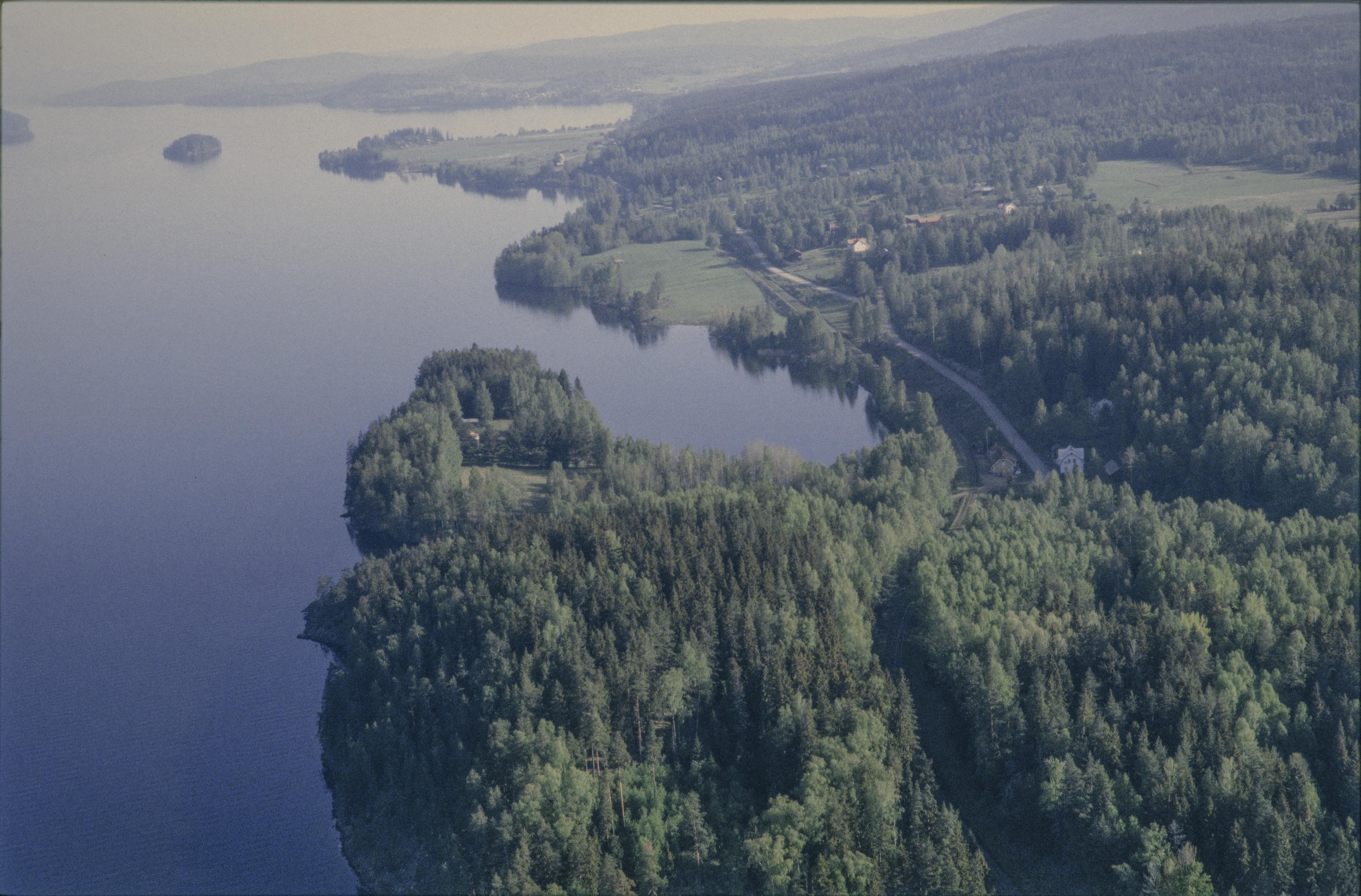 Beskrivning: Sjön Övre Fryken. Vid bildens mitt Ivarsbjörke och Uddeholm vid gränsen mot socknet Lysvik (i bildens högra del). Röse RAÄnr Sunne 45:1, 46:1-2, 47:1 m.fl. Bilden är tagen mot (väderstreck): N