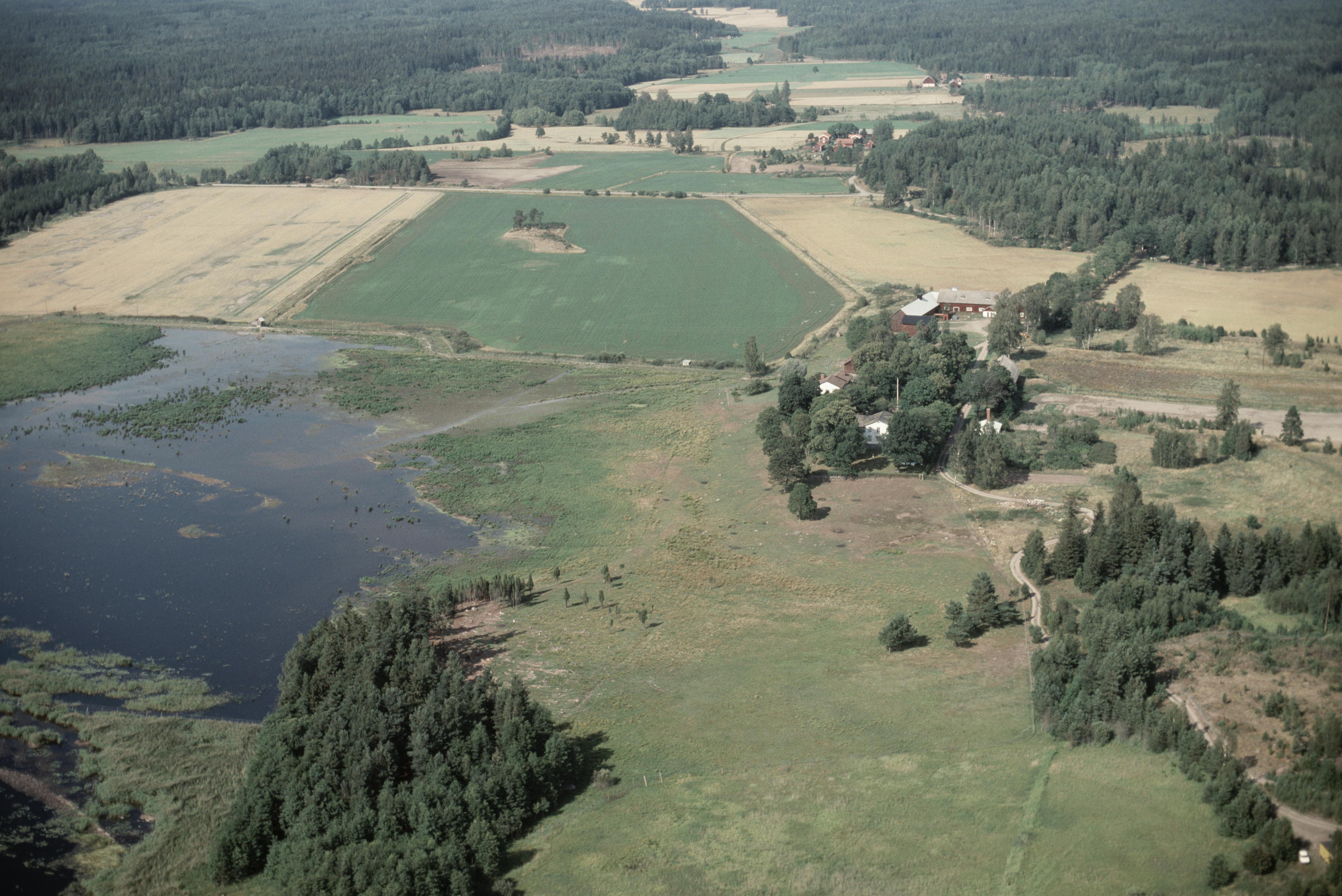 Beskrivning: Hygn vid Inre Kilsviken. Gravfält RAÄnr Visnums-Kil 8:1 vid bildens mitt. Bilden är tagen mot (väderstreck): N