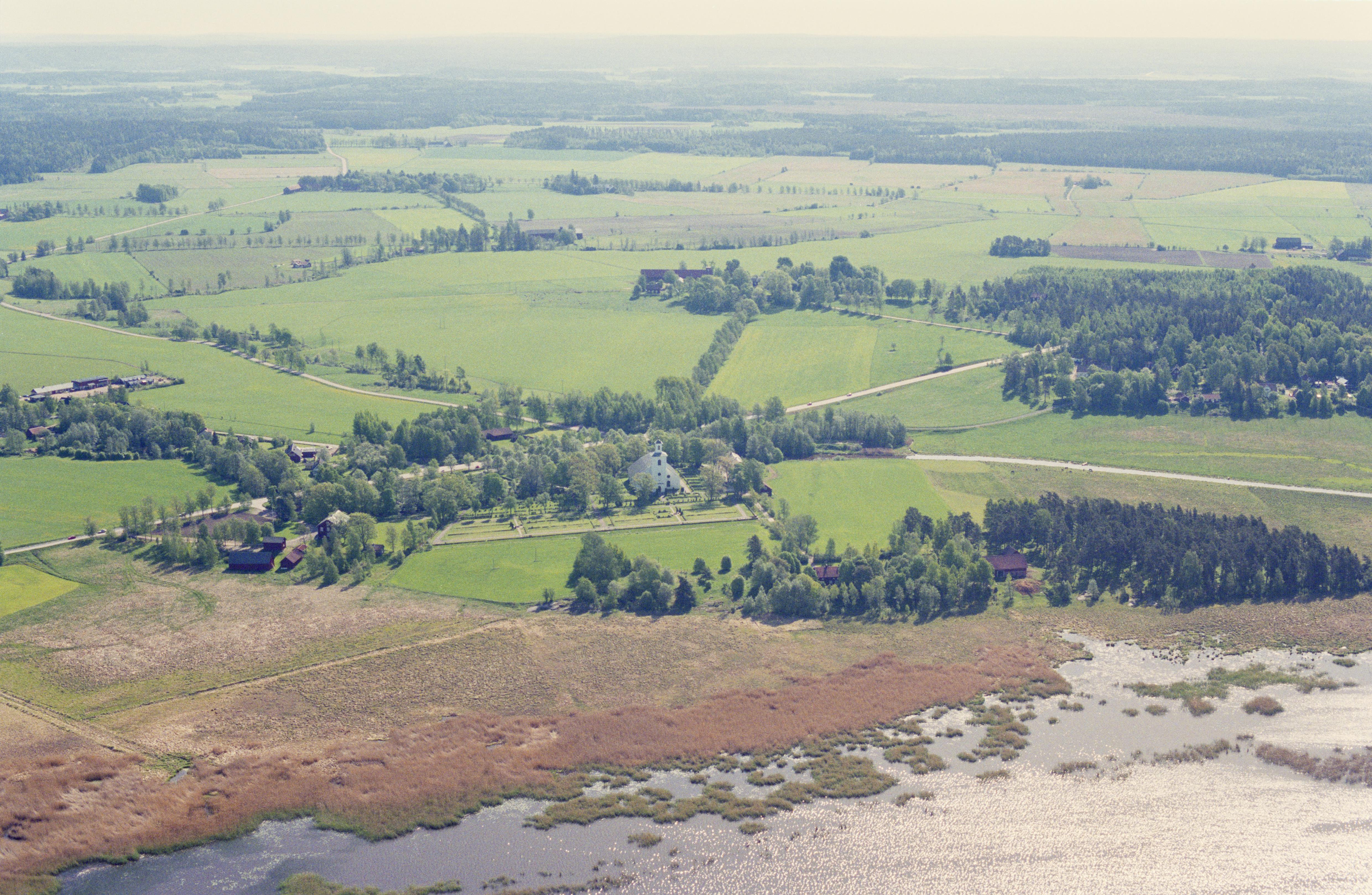 Beskrivning: Väse kyrka. Till höger ön Glummans utlopp i sjön Panken. Bilden är tagen mot (väderstreck): Ö