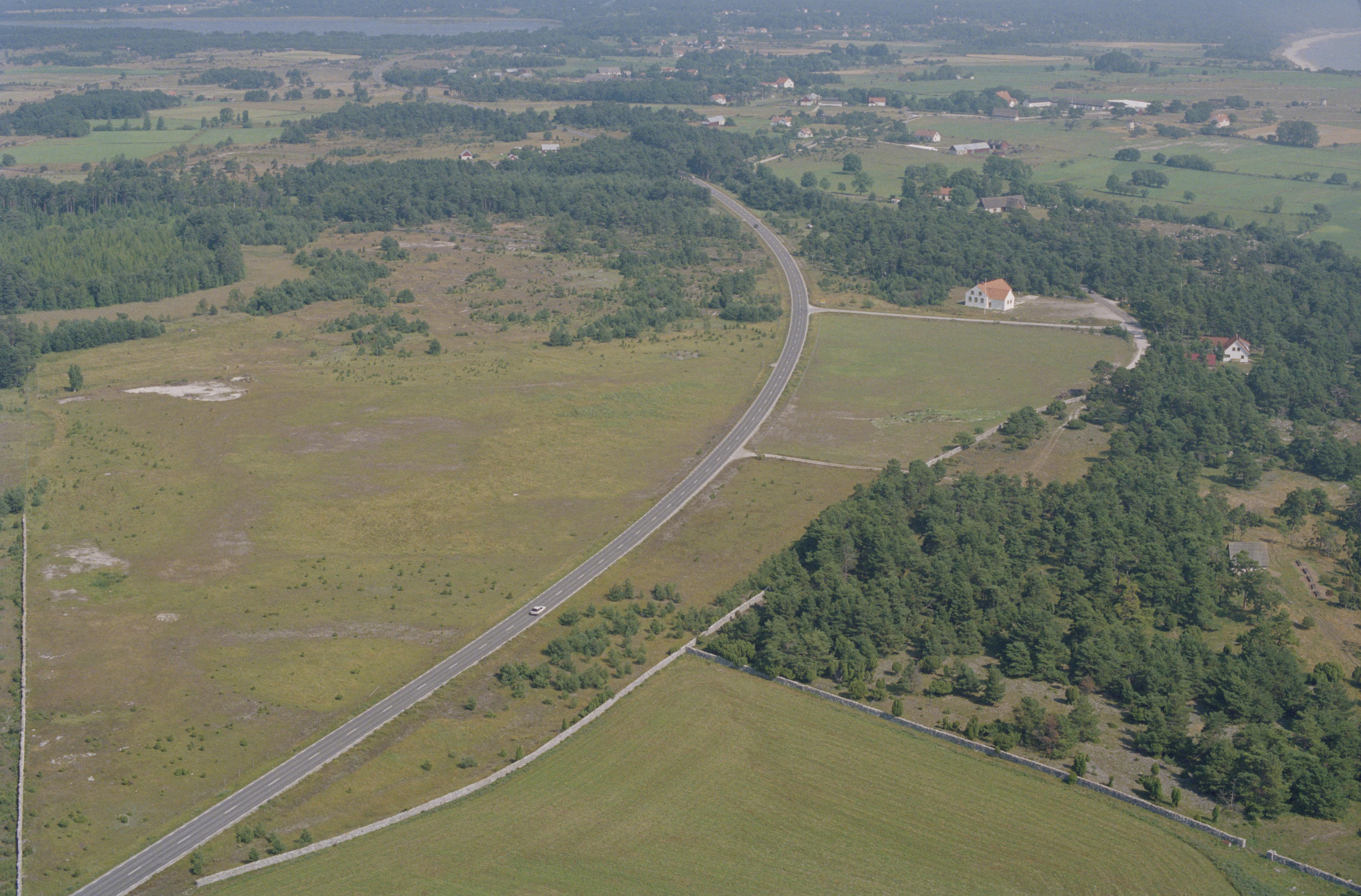 Beskrivning: I bildens övre del byarna Stora Gasmora och Ringvida. Till höger över bildens mitt hembygdsgården vid gården Nystugu. I skogen bak gården kalkugnsruin RAÄnr Fårö 354:1. Bilden är tagen mot (väderstreck): NO