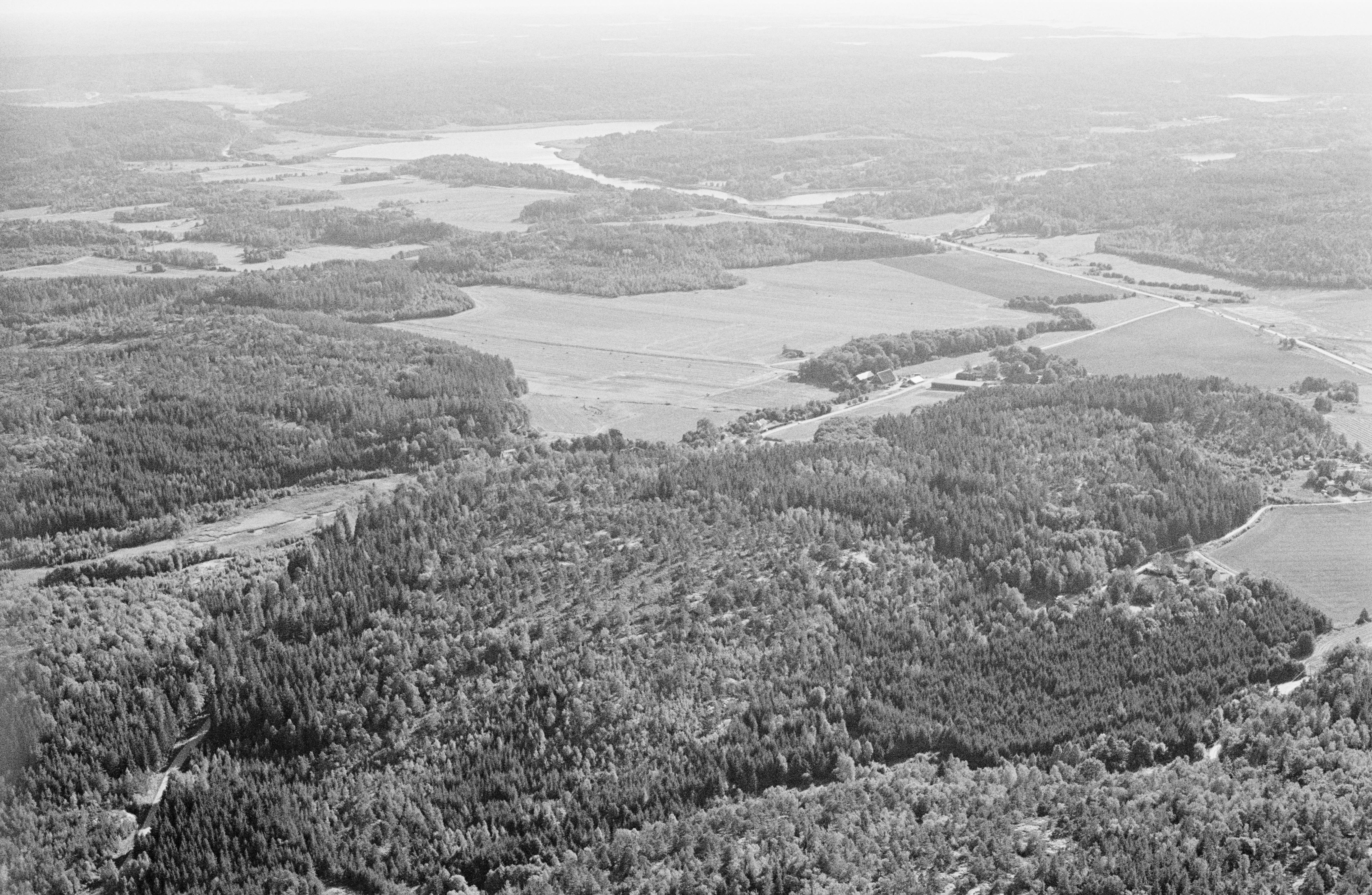 Beskrivning: Dalgången från Hoppareberget mot sjön Färingen. Bytomt RAÄnr Skee 1500:1 och boplats 1592:1 vid bildens mitt. Till höger över bildens mitt Blomsholms herrgård. Bilden är tagen mot (väderstreck): NO