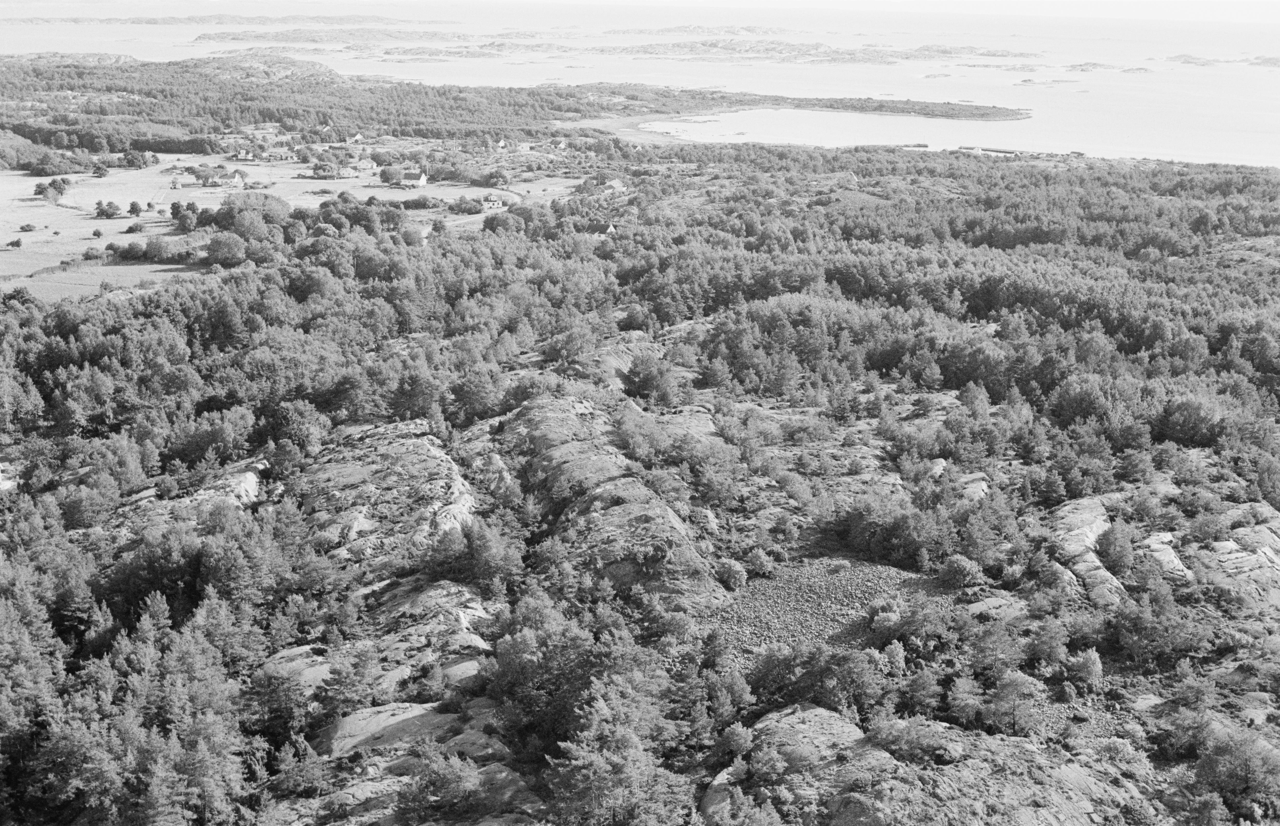 Beskrivning: (Skrivs även Sydkoster). Boplats RAÄnr Tjärnö 166.1 vid Röd i bildens mitt. I bildens övre del fiskehamnen Brevik. Bilden är tagen mot (väderstreck): SSV