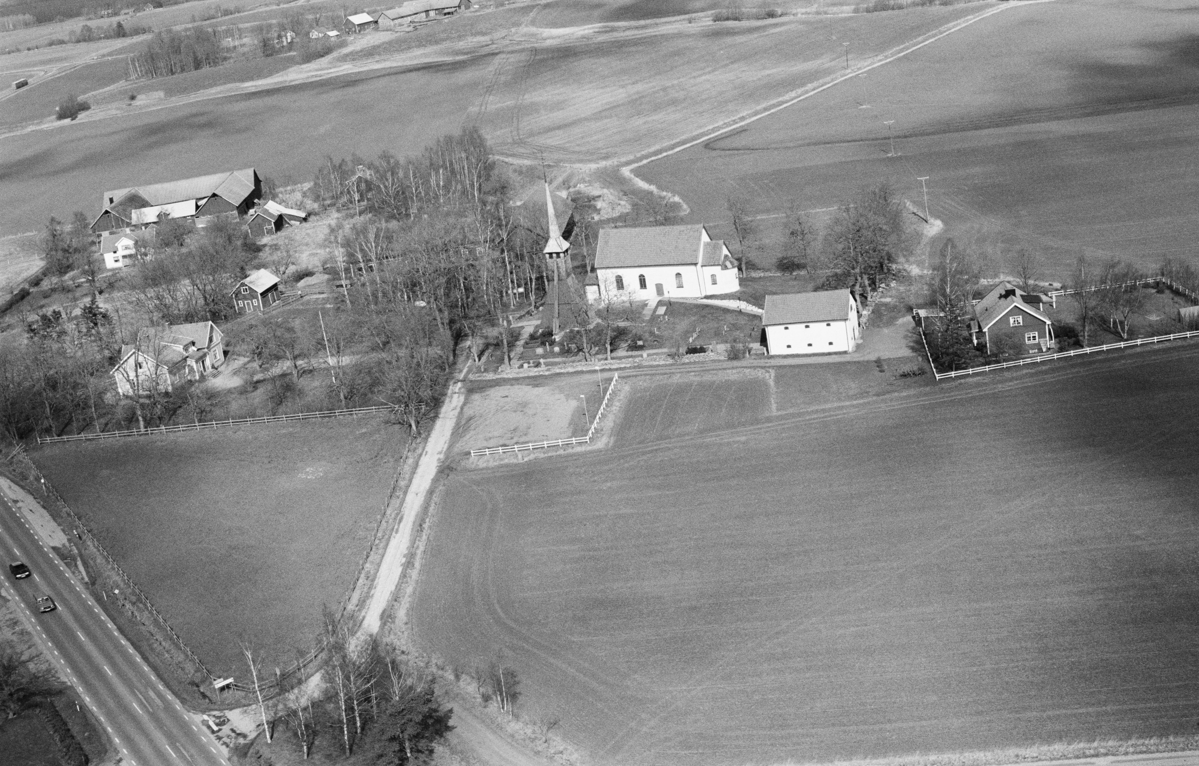 Beskrivning: Forsby kyrka, kyrkby och sockenmagasin. Kyrkan står på gravhög RAÄnr Forsby 48:1. Bilden är tagen mot (väderstreck): NO