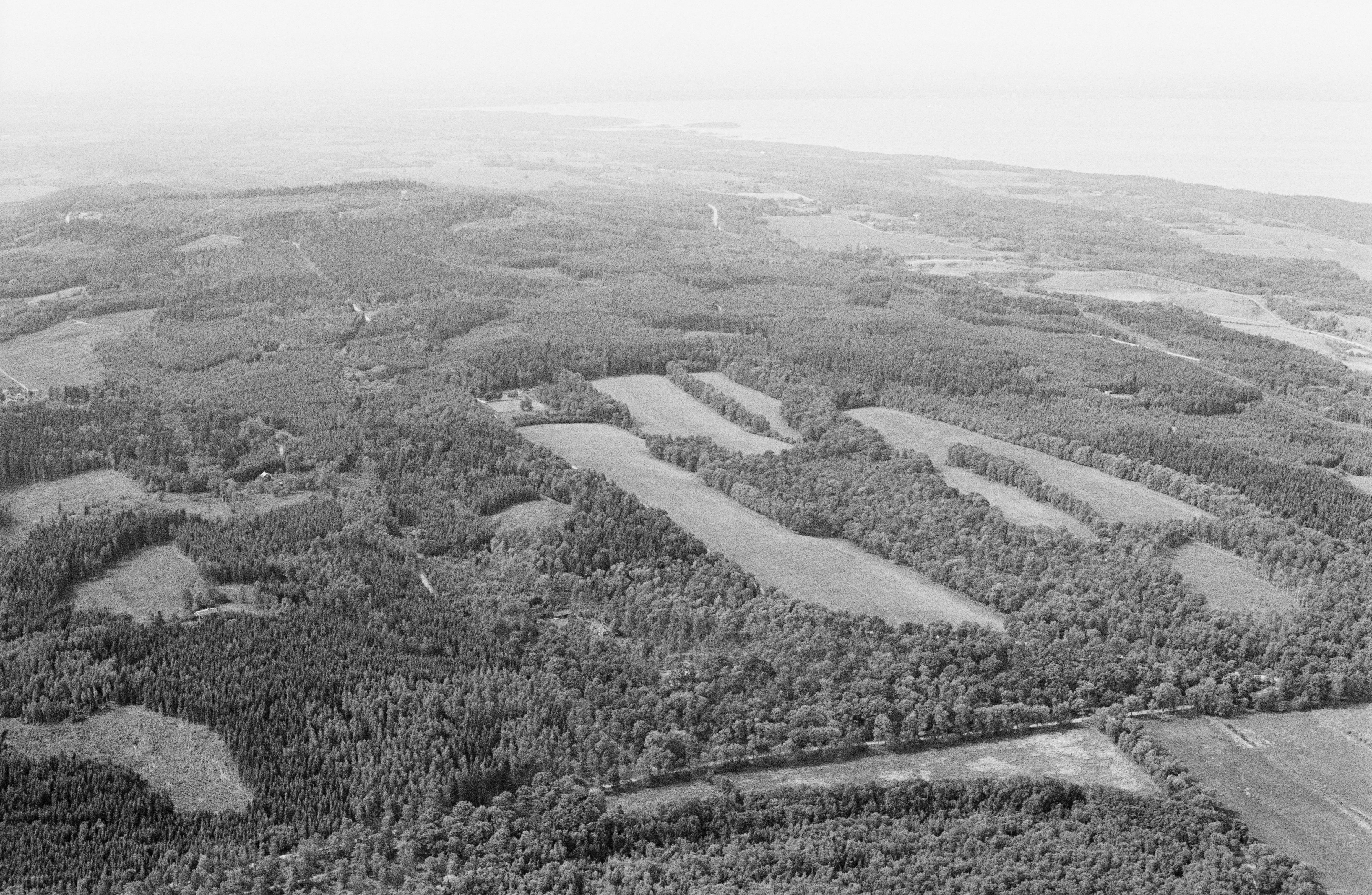 Beskrivning: Hästhagen i Hällekis vid bildens mitt. I bildens övre del Kinnekulle i Medelplana socken. Bilden är tagen mot (väderstreck): SV