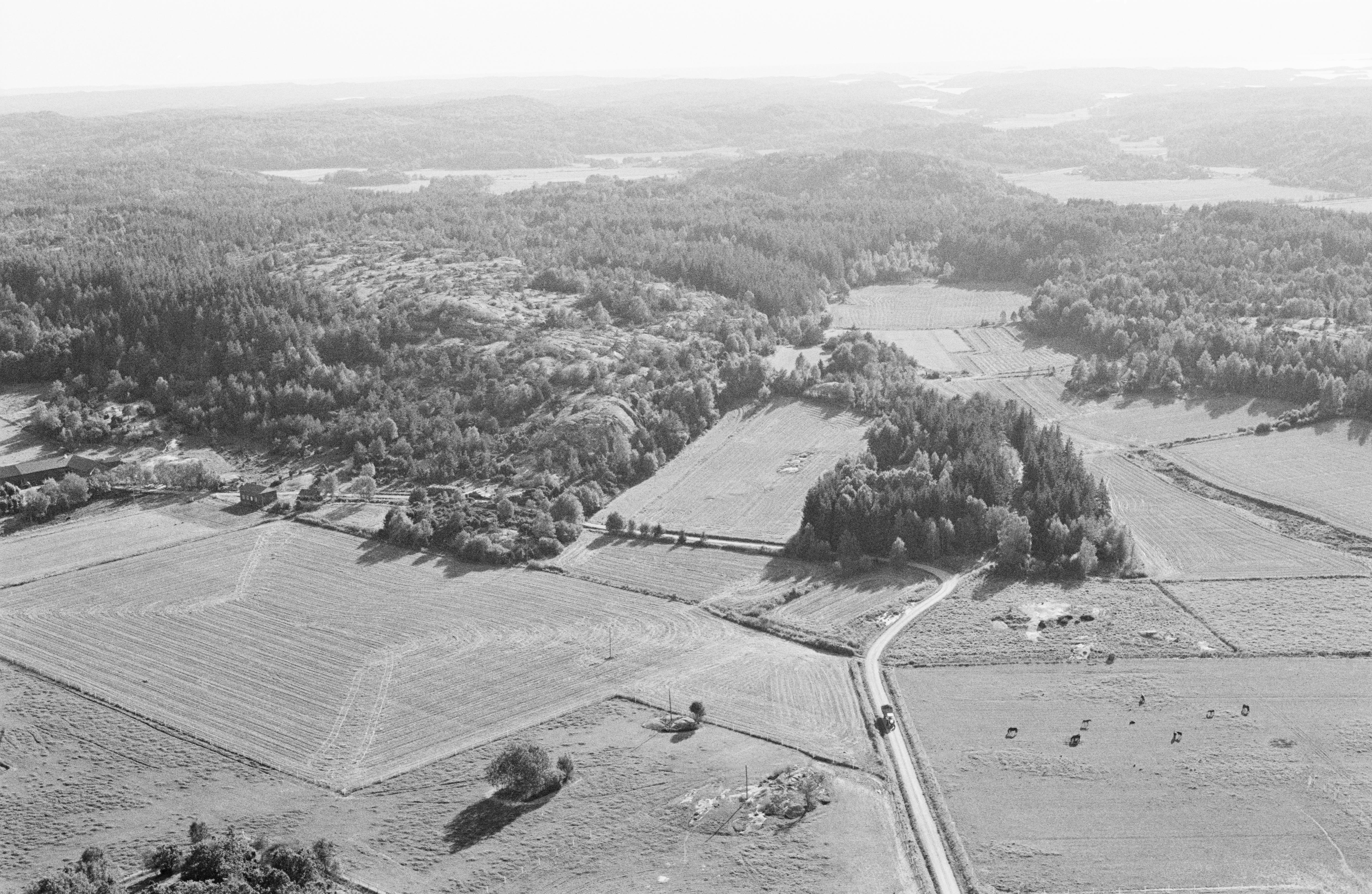 Beskrivning: Tanumsslätten. Hällristningsområde i fornlämningsrik dalgångsbygd. Hällristningar i Kalleby (i Kville och Tanums socknar). Hällristningar RAÄnr Tanum 422:1, 507:1 m.fl. Bilden är tagen mot (väderstreck): SV