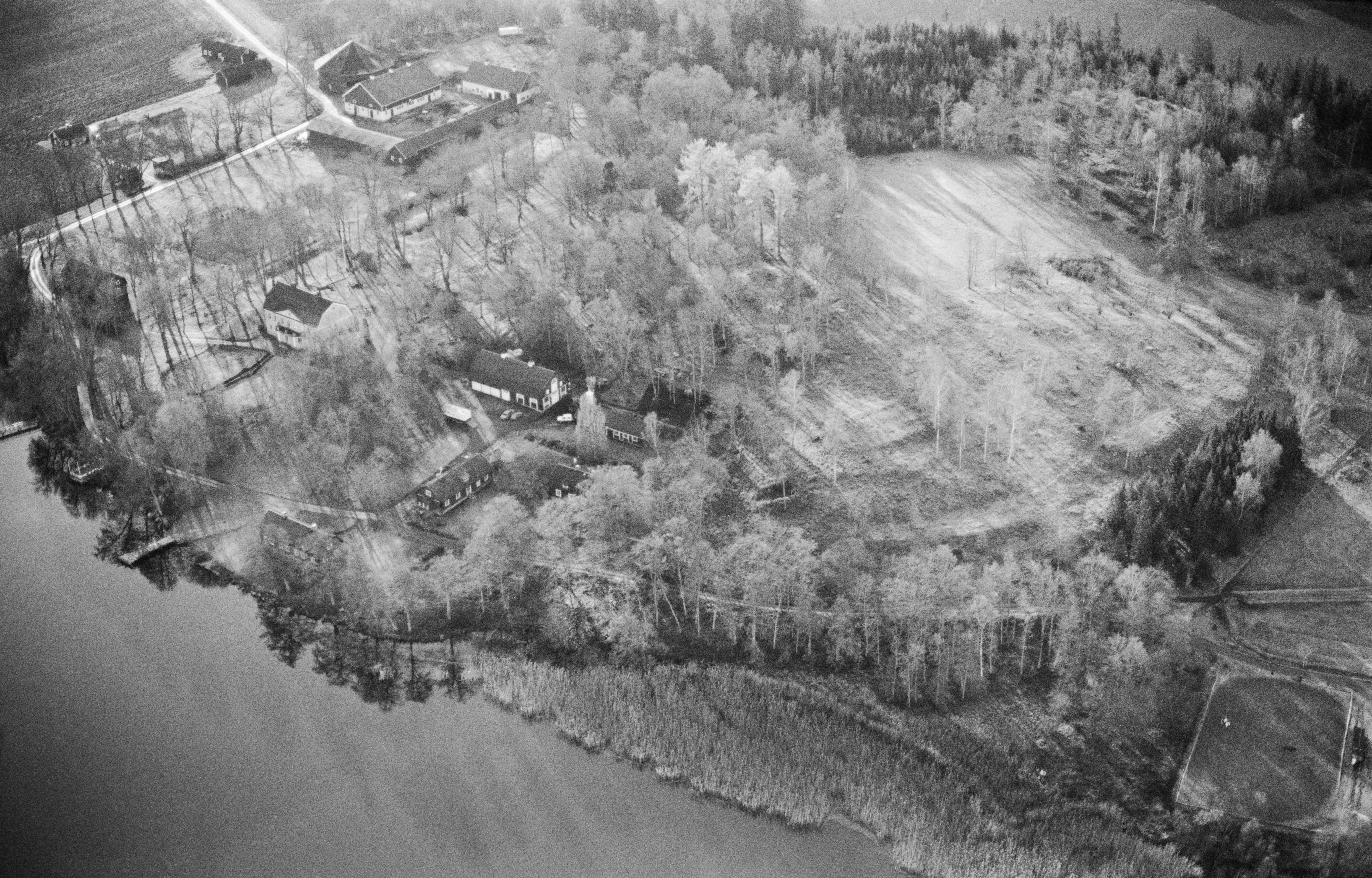 Beskrivning: Signhildsbergs kungsgård vid Håtunaviken i Mälaren. I området husgrund Fornsigtuna RAÄnr Håtuna 101:1, gravfält Håtuna 99:1. I bildens mitt tegelindustri Håtuna 122:1. Bilden är tagen mot (väderstreck): S