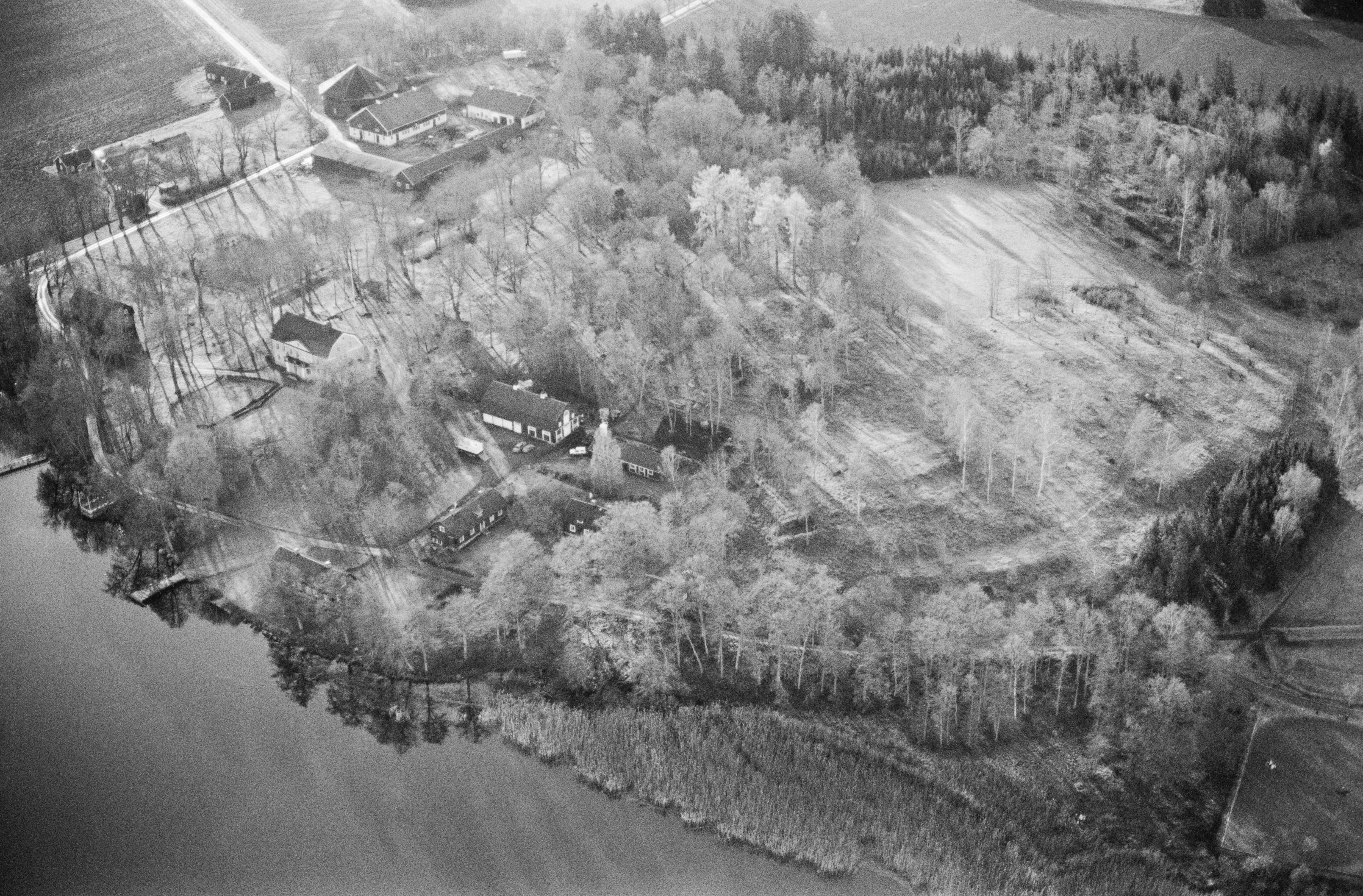 Beskrivning: Signhildsbergs kungsgård vid Håtunaviken i Mälaren. I området husgrund Fornsigtuna RAÄnr Håtuna 101:1, gravfält Håtuna 99:1. I bildens mitt tegelindustri Håtuna 122:1. Bilden är tagen mot (väderstreck): S