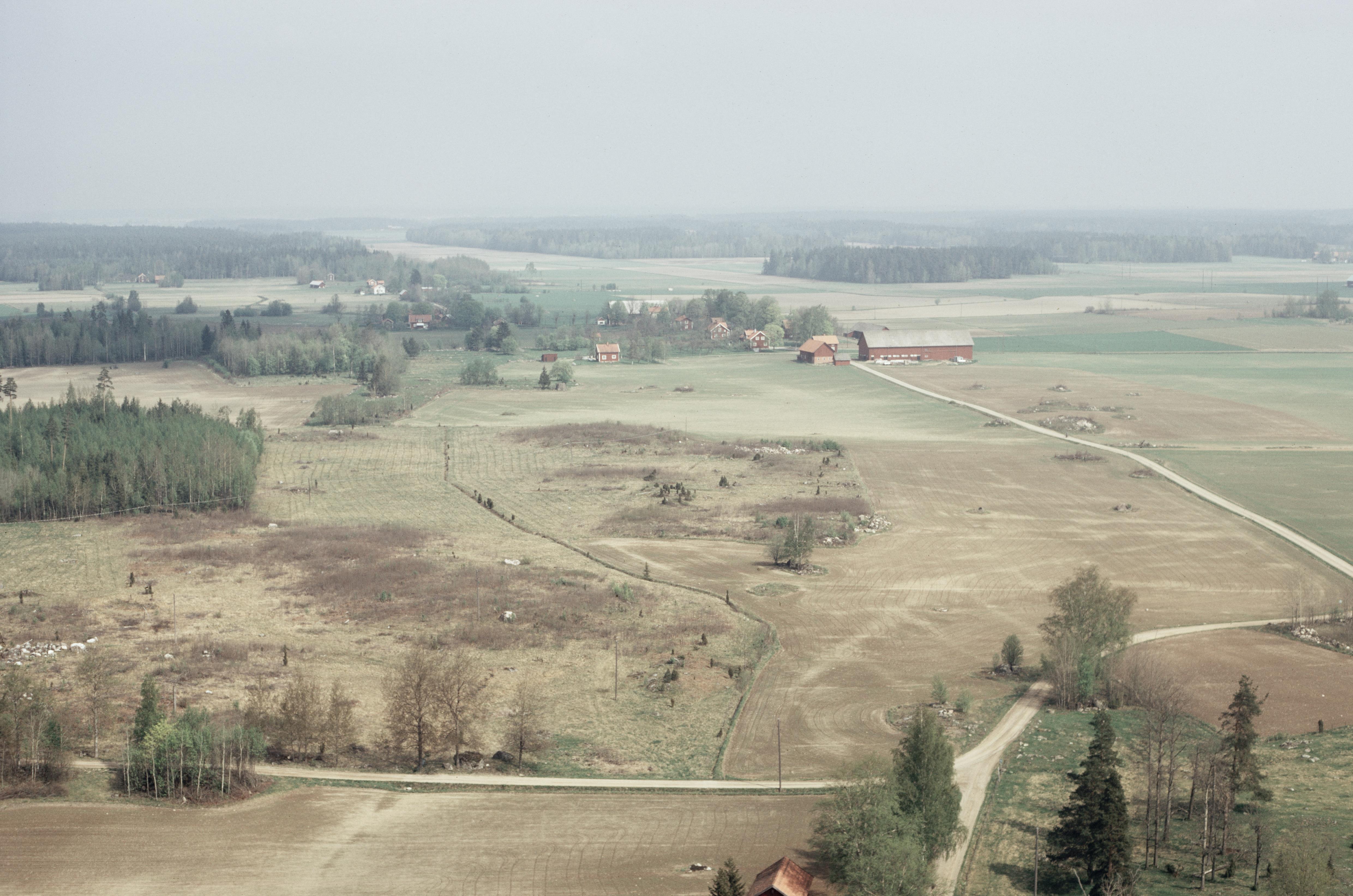 Beskrivning: Råberga vid Horsten. Vid bildens mitt fornåkrar RAÄnr Täby 77:1 och 78:1. Uppe till höger Råberga gamla tomt Täby 60:2. Bilden är tagen mot (väderstreck): NO