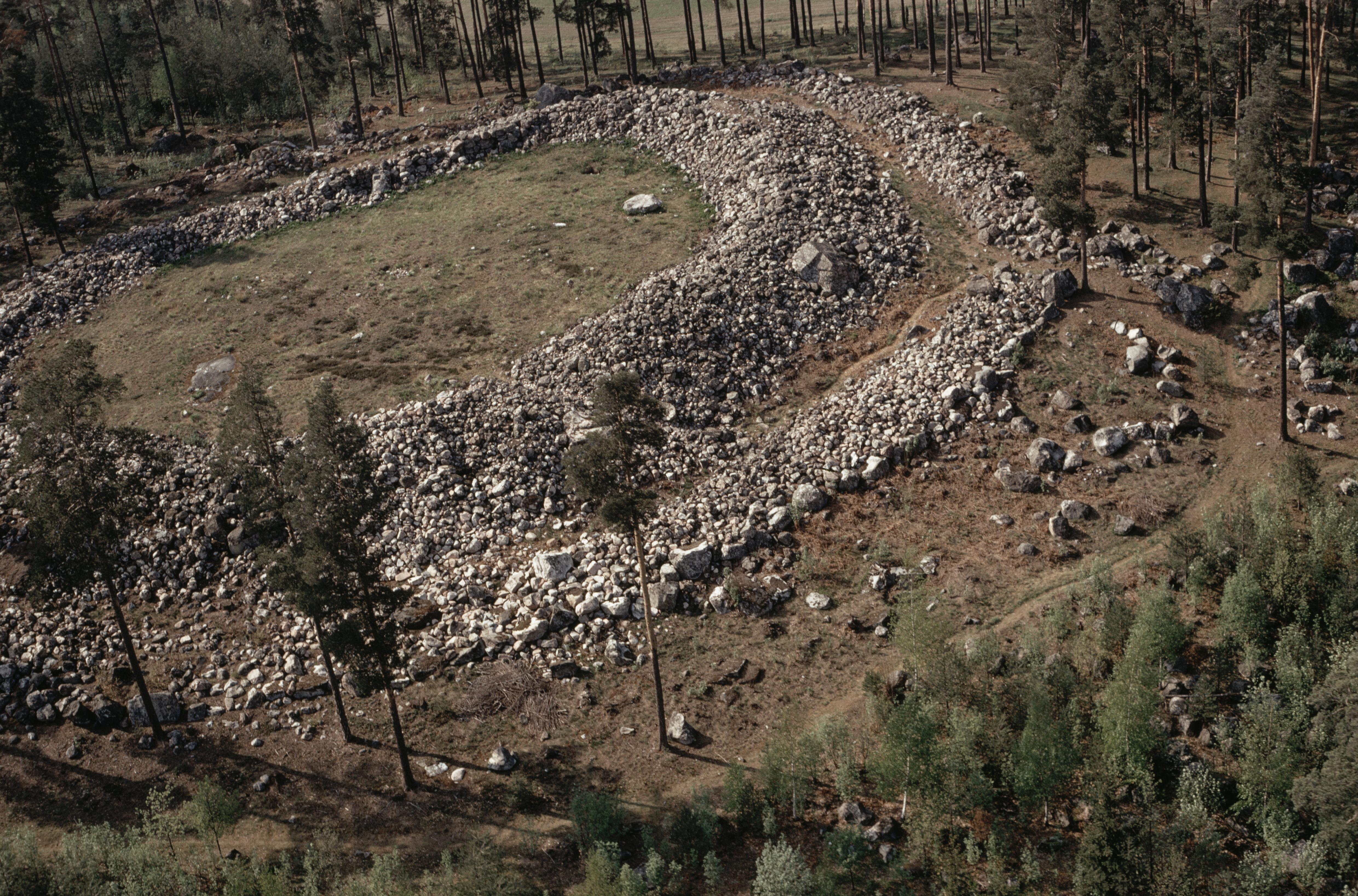 Beskrivning: Fornborgen Borgby skans RAÄnr Säby 81:1 vid gränsen mellan socknen Kolbäck och Säby. Bilden är tagen mot (väderstreck): NV