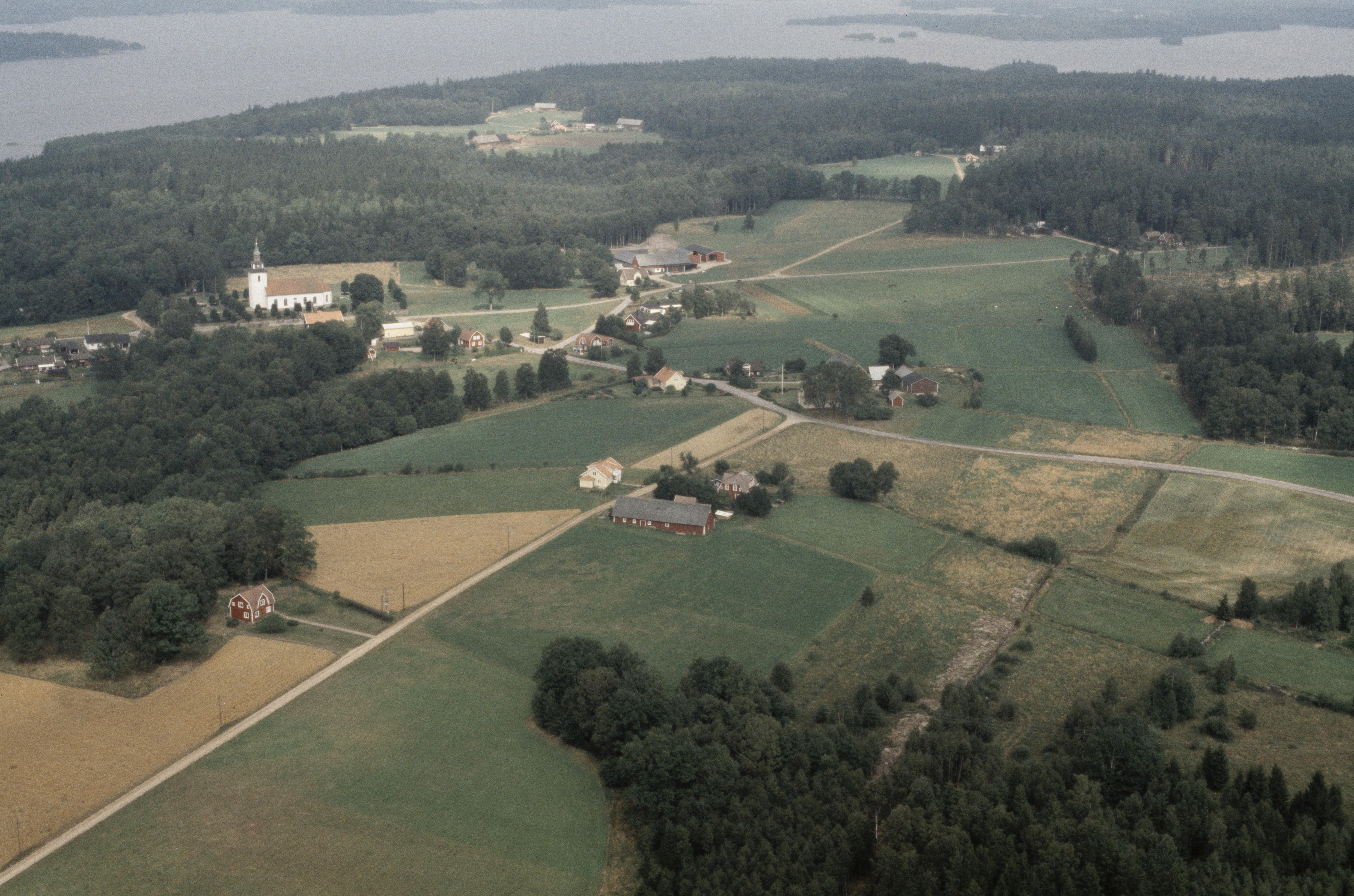 Beskrivning: Bolmsö kyrka och kyrkby vid sjön Bolmen. Bilden är tagen mot (väderstreck): N